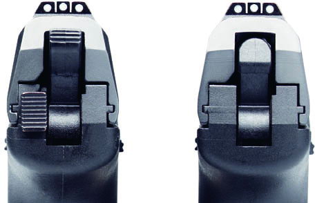 P2000 SK V3型:有击锤顶纹和待击解脱杆,无待击块,可实现单动、双动发射。