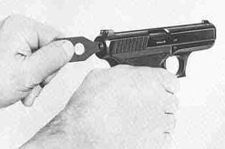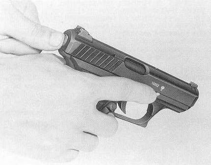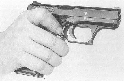 | 不压下握把保险时,手枪处于保险状态。 | ![]() |