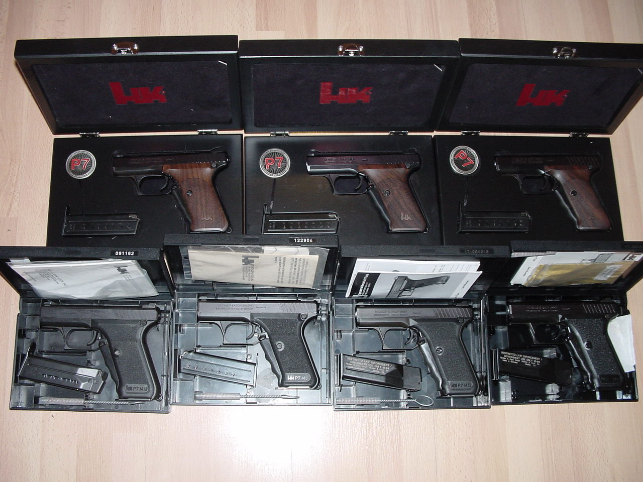PSP手枪竞争的最后结果是选出来3种手枪而不是1种,让各地警方自行选择采购。这3种手枪包括华尔特公司的P5、SIG-SAUGER的P225(西德警方命名为P6)及HK公司的PSP。HK PSP的生产是从1976年到1978年,总共生产了239支,因此生产序列号也是从001至239。而第240至250号则被称为PSP/P7,再往后生产的就是正正式式的各型P7手枪了。