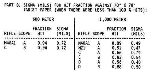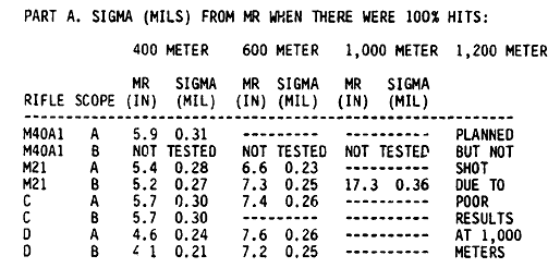 另一方面,这份报告中M40A1也不如M21,所以我始终怀疑这次测试是陆军为了坚挺M21的信心而搞的,如果M21真的这么好,他们就不会在十年后换上M24了。
