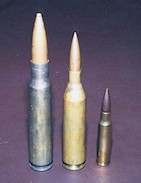 上图为弹头对比,下图为全弹对比,从左到右为:.50BMG、9×90mm MEN、7.62×51mm