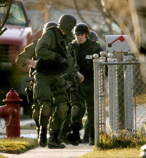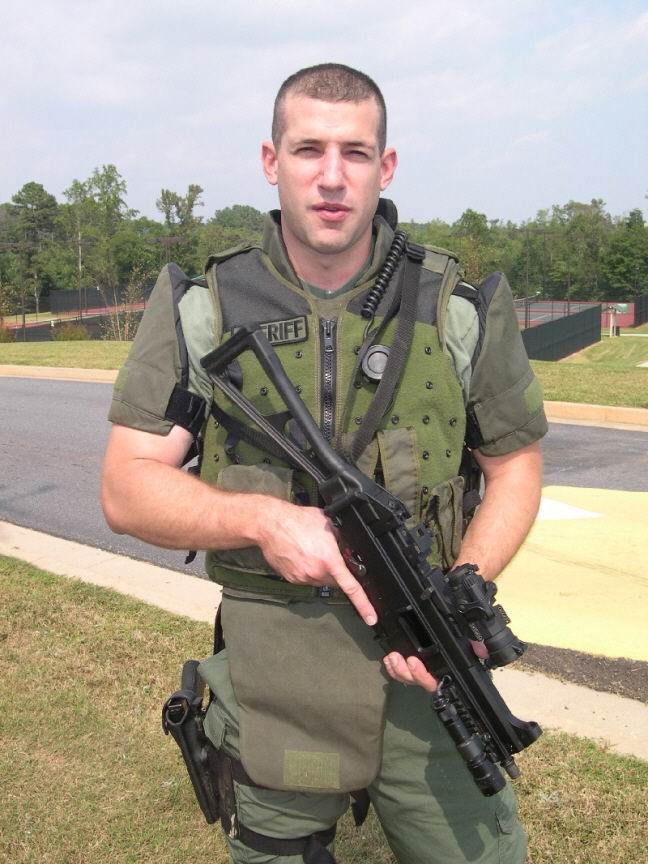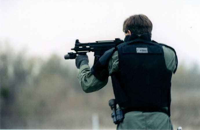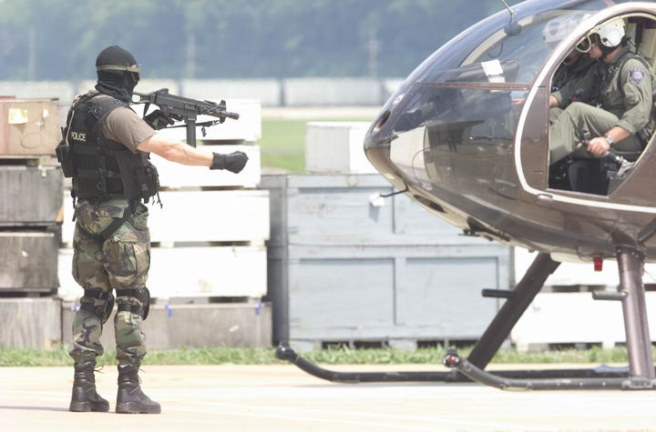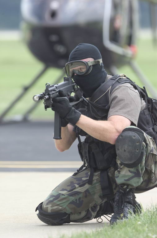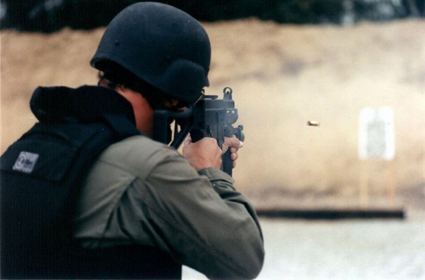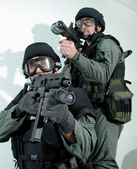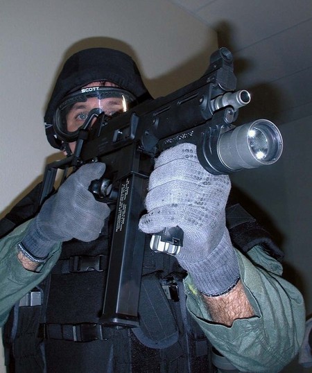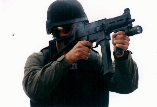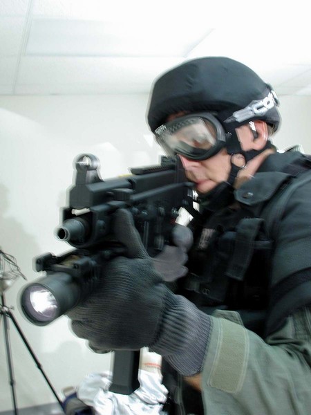 这似乎是第一次公开的装备UMP冲锋枪的警察参与实际行动的照片。2001年9月4日,SWAT队员和一个湖县警察局的代表在印地安那州洛厄尔市的