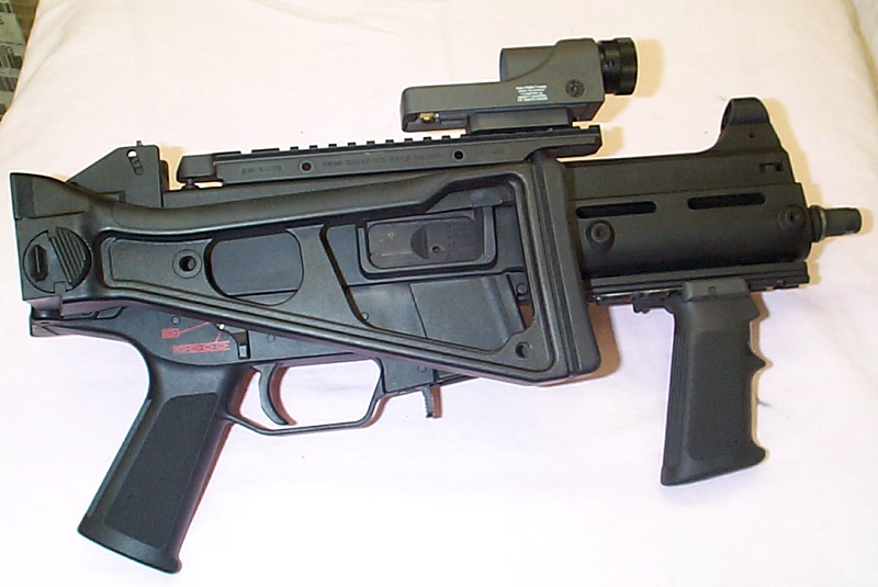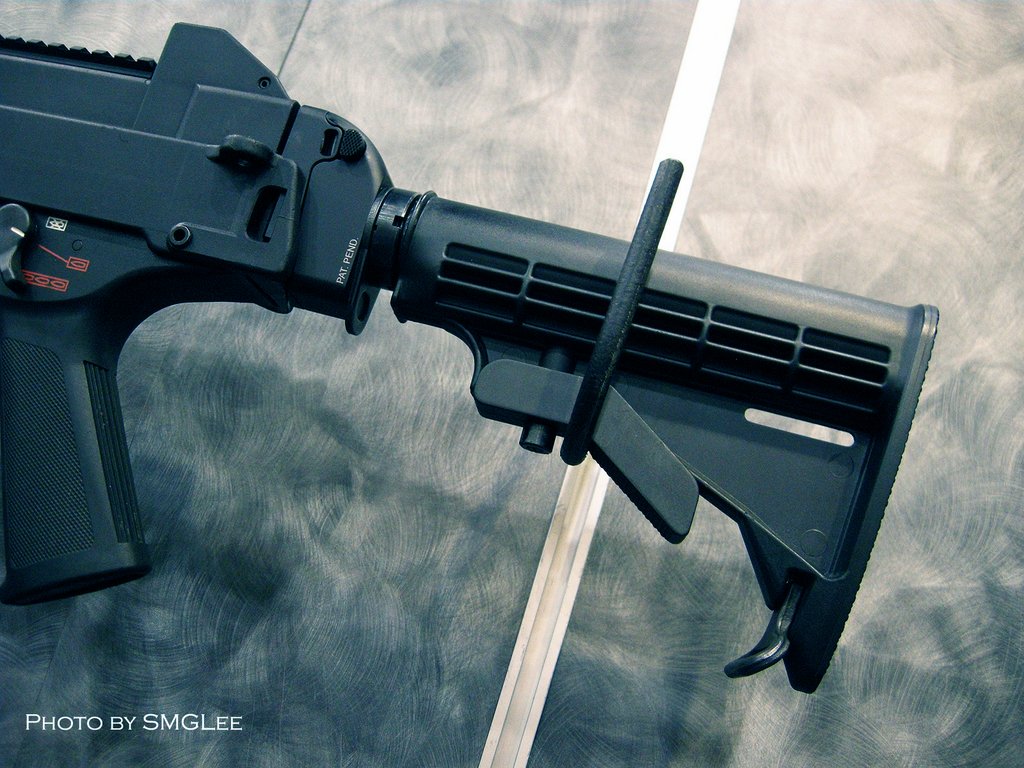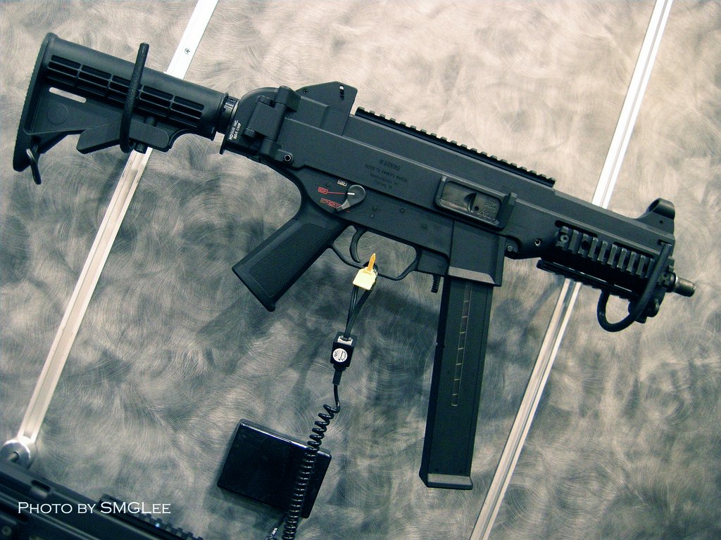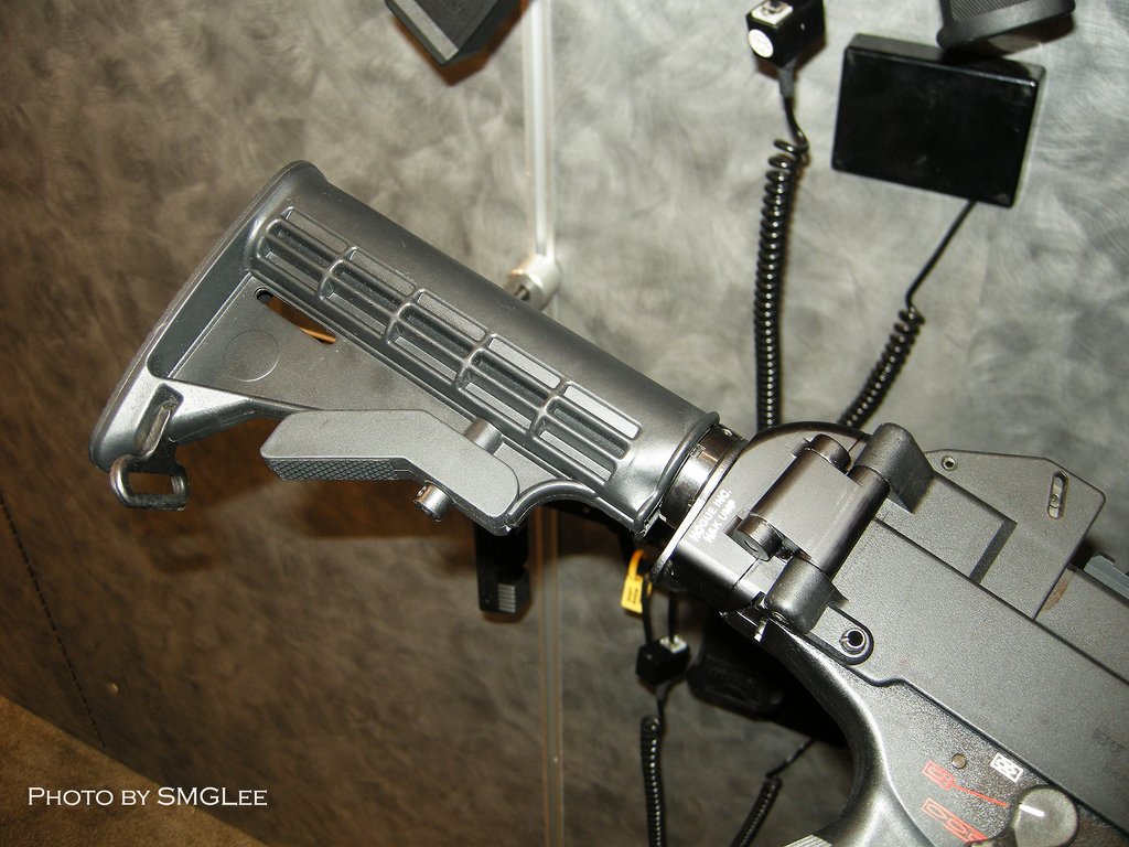 SMGLee在SHOT SHOW 2008上拍摄的UMP45,这个型号使用折叠的伸缩式M4枪托