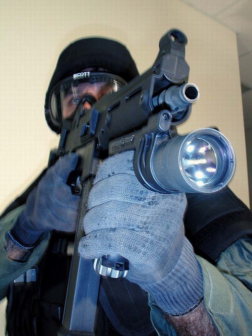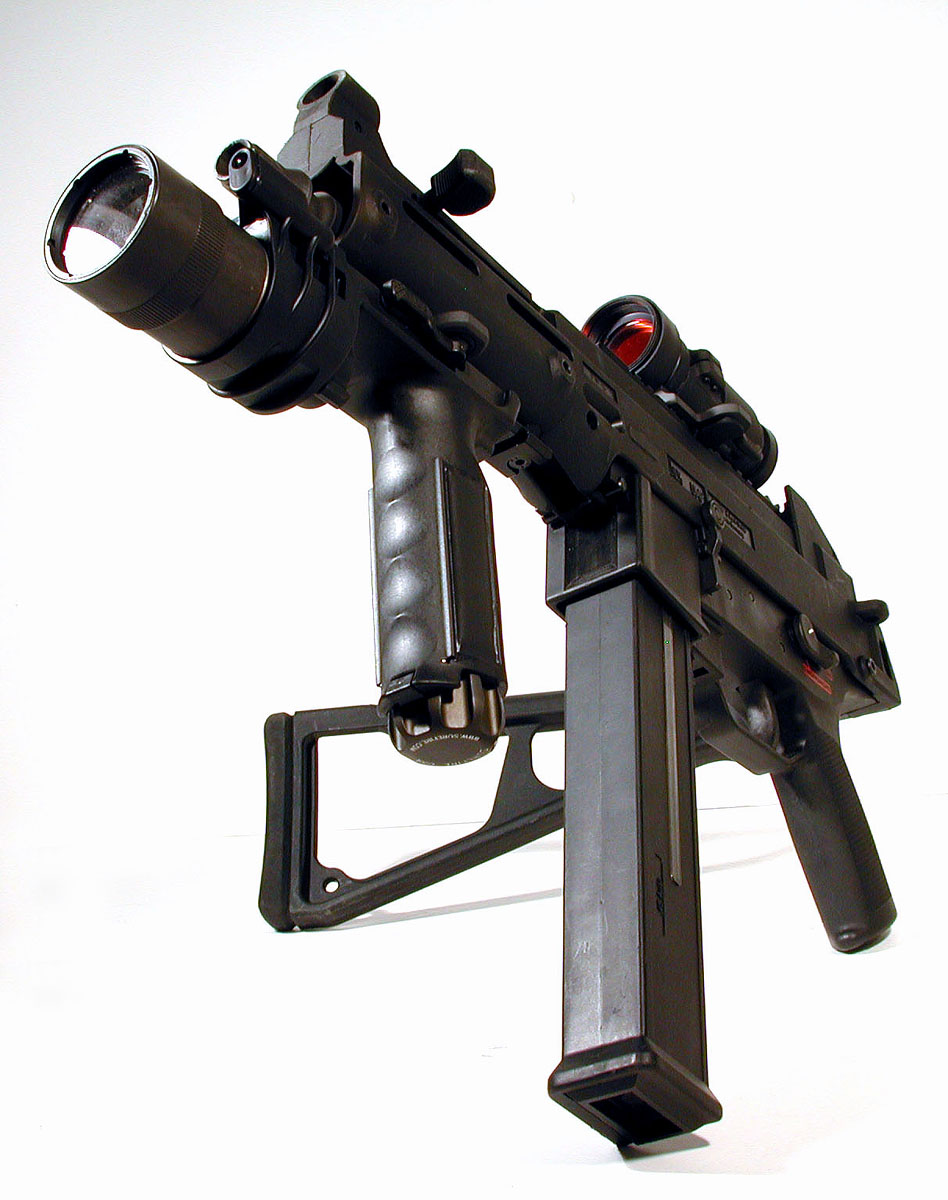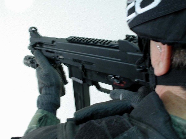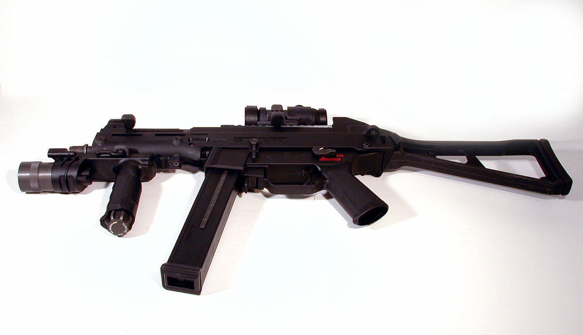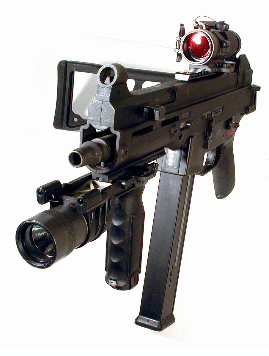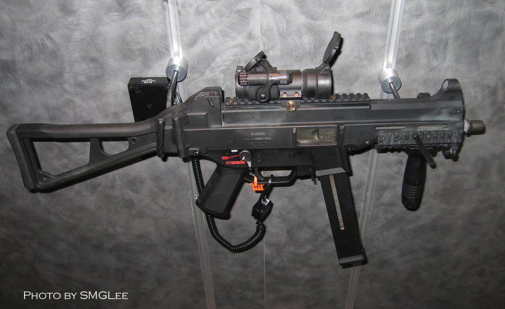 下面这组UMP45的照片中,安装了SURE-FIRE公司的新产品——带小握把的M900战术灯,图片很大很清晰,有助于你了解UMP45的一些细致部位。