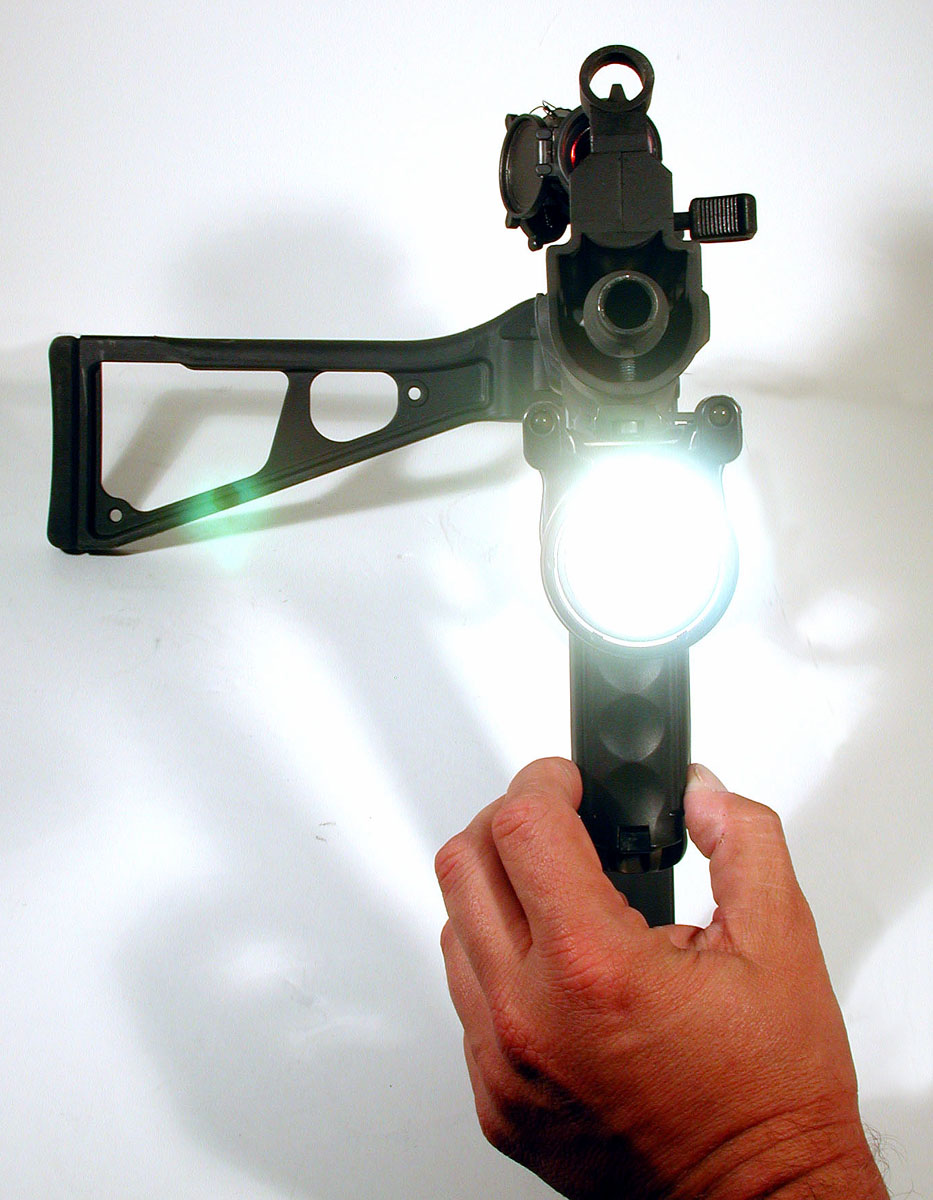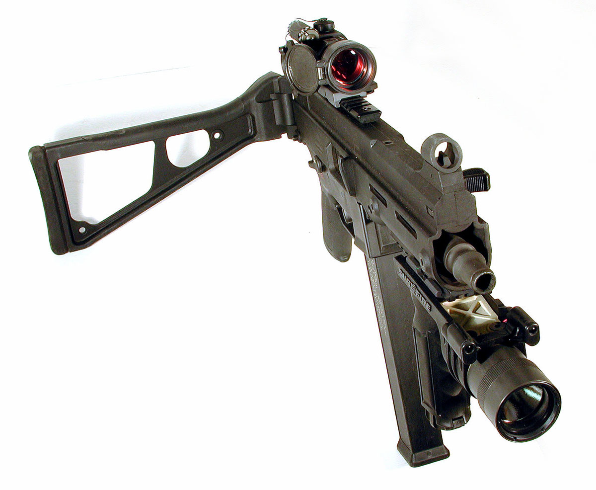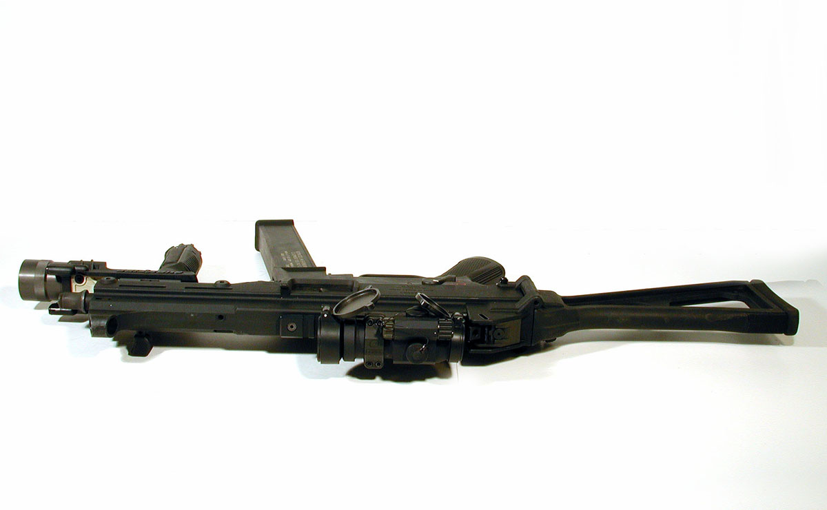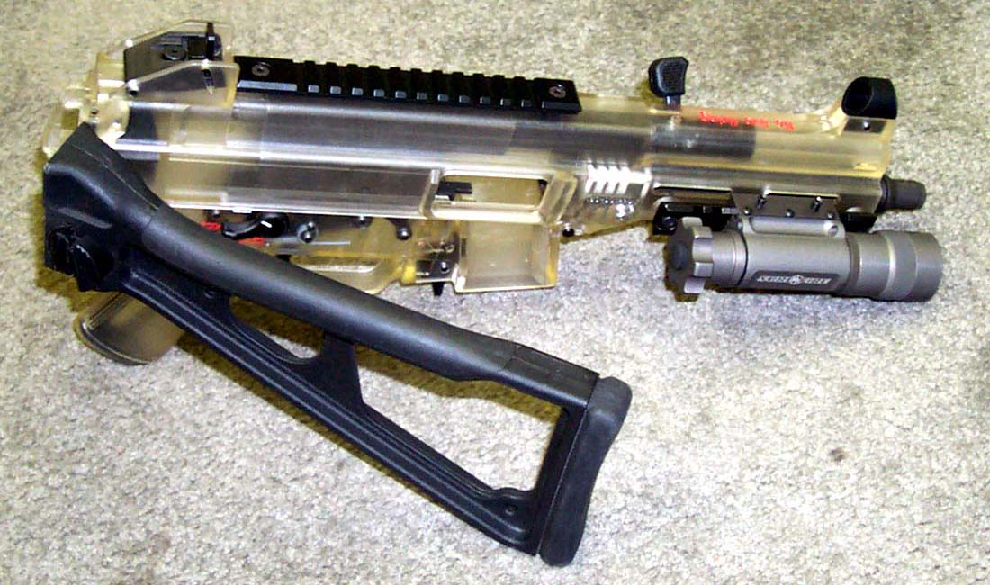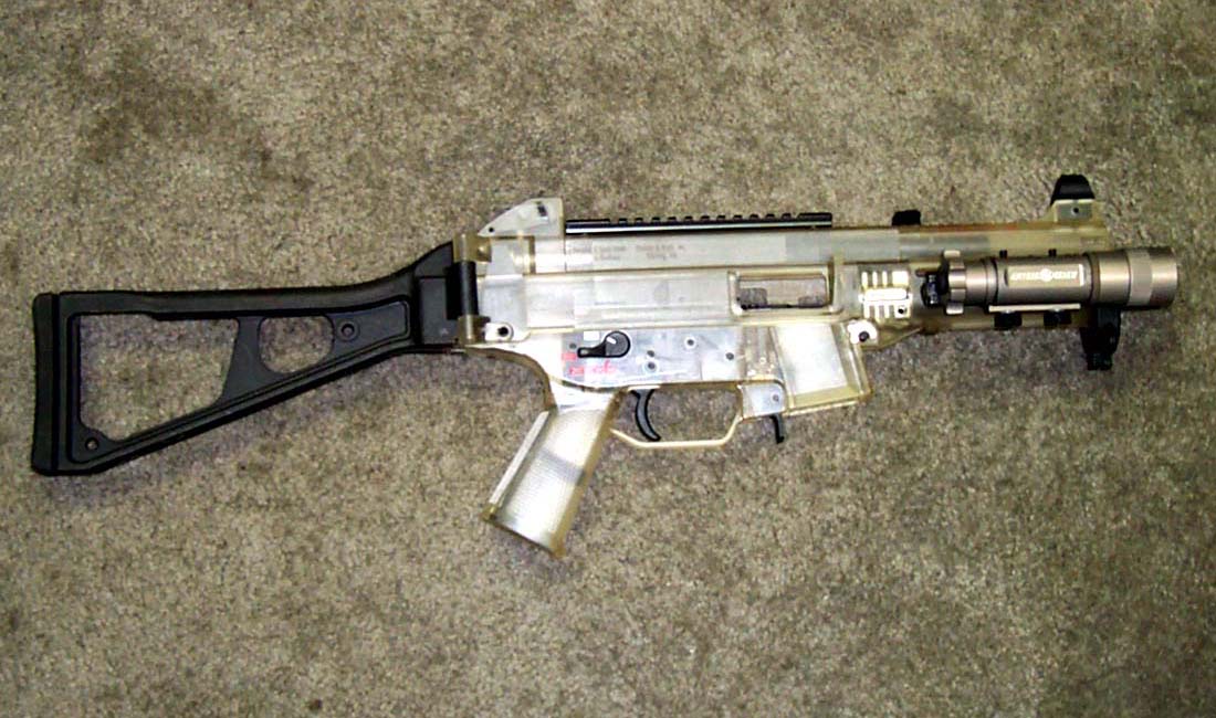 下面这组UMP45的照片中,安装了SURE-FIRE公司的新产品——带小握把的M900战术灯,图片很大很清晰,有助于你了解UMP45的一些细致部位。