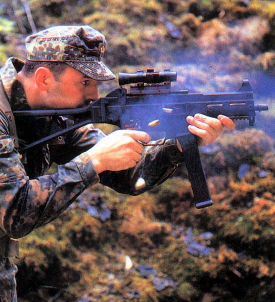 UMP45的自动方式不再是MP5传统的半自由枪机式,而是采用自由式枪机,为了保证射击精度采用闭膛待击。另外,为便于连发时操枪和减小射弹散布,还安装了射速减速器,把射速限制在580发/min,在发射高压弹(+P弹)时,射速会提高到700发/min。 塑料制的直形弹匣容量为25发,比MP5少,这是因为.45ACP弹的直径比9mm弹大得多。另外还有设计有一种10发的短弹匣。枪管前端有一个凸爪,凸爪的设计与MP5不一样,但作用是一样的,是为了安装消声器或消焰器。枪托向右折叠后,抛出的弹壳从枪托中的孔中抛出,与G36相似。枪的分解十分简单,也与G36相似,因为这是设计时刻意采用的一条原则。UMP45的瞄具采用的是柱型准星和固定的觇孔式照门,简单实用,不过在试验中普遍反映瞄具的位置偏低。 UMP45的鉴定试验小组由SWAT、SEAL及FBI的试验人员组成,他们进行了射击场、近战演习等大量试验。试验人员故意将不同型号的.45子弹装进同一个弹匣中射击,这样的方式发射了几百发后都没有出现过一次故障。经过这些试验证明,UMP45的可靠性很好,射击精度也相当高,尽管.45ACP弹的后坐力较大,但连发时的后坐力却相当低。总之,UMP45性能优秀,完全符合特种作战的要求。不过作为鉴定意见,试验小组希望HK公司在批量生产时将瞄具的位置提高一些,以便能贴腮瞄准。 |