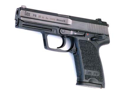 USP虽然不是为德国军方研制的,但由于性能优异可靠,适逢德国联邦国防军大换装,于是HK公司以9mmUSP为基础,为德国军队研制的出P8军用手枪。除狙击步枪外,从突击步枪、轻机枪到手枪,德国军队都已经换上HK公司的90年代新产品了。