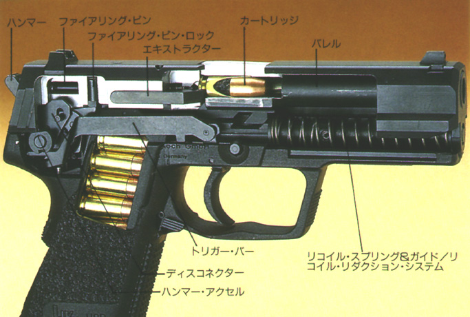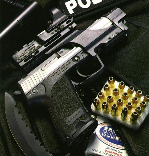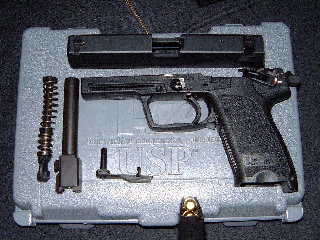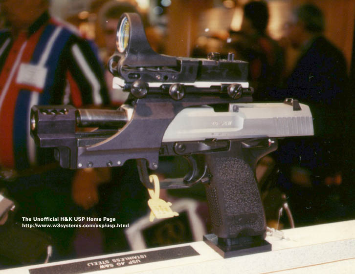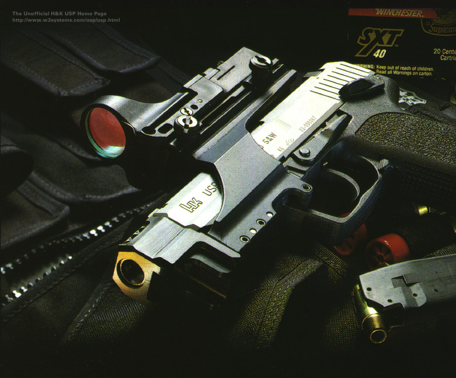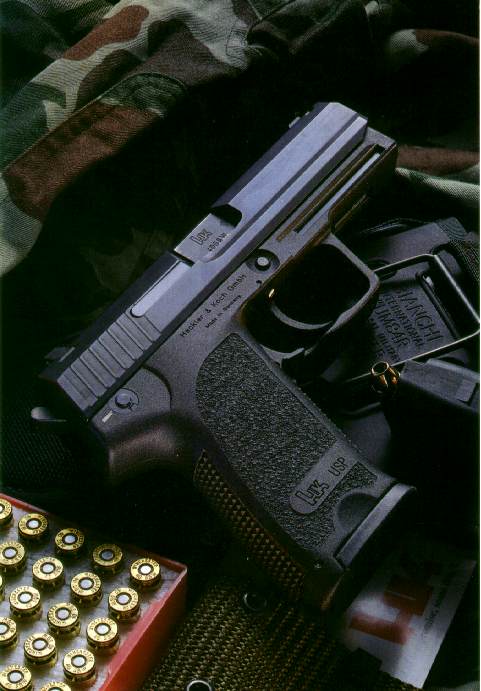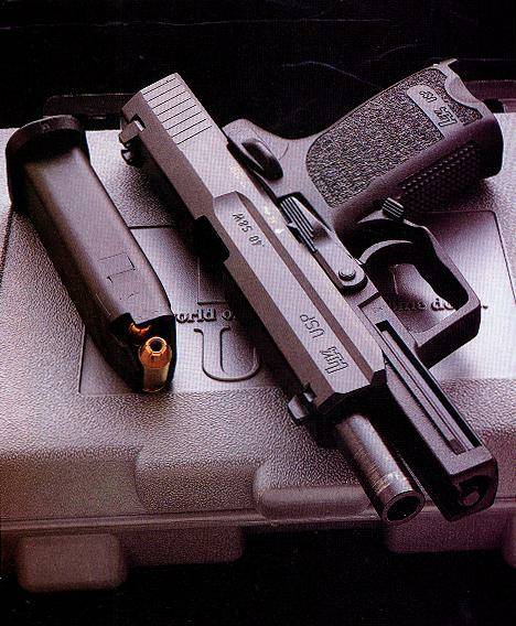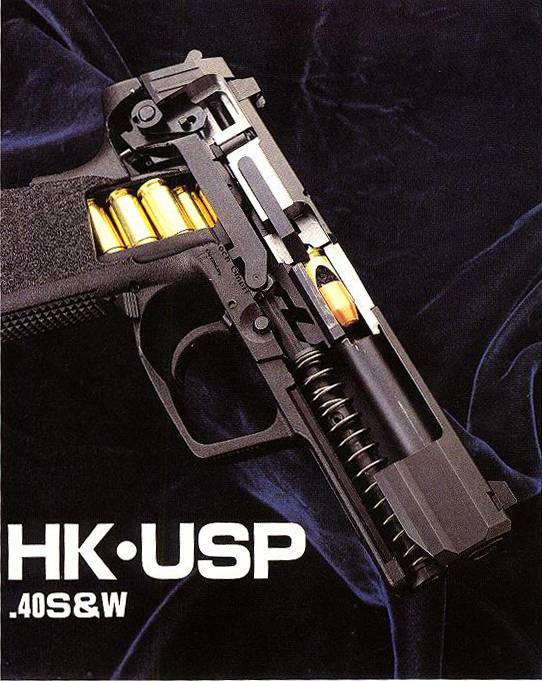 USP(Universal Selbstlade Pistole)是HK公司第一支专门为美国市场设计的手枪,它的设计原则以美国民间、执法机构和军事部门的用户要求为依据的。在1993年休斯顿举行的SHOT Show上,USP第一次向公众展示,同年,USP开始投入生产。