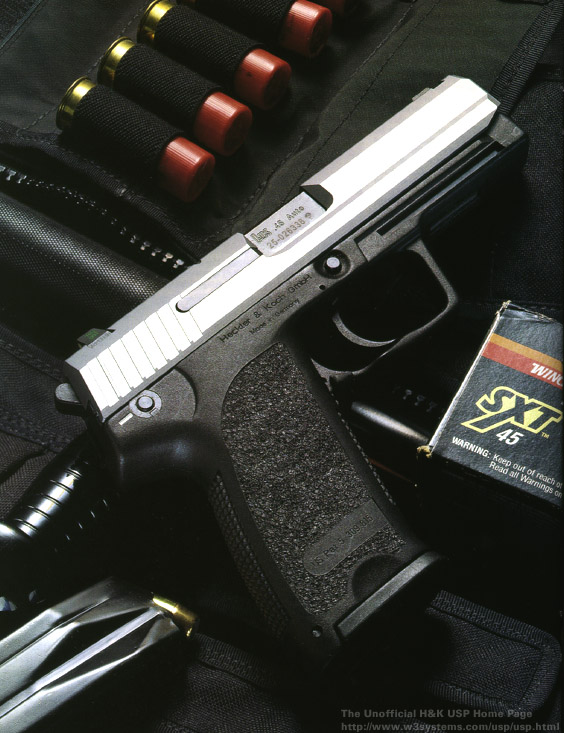 USP一开始只有9mm和.40S&W两种口径,虽然这两种型号相当受欢迎,但许多美国人始终对.45口径情有独钟,当年在美国军方选择发射9mm的伯莱达92F手枪作为制式手枪后,发射.45ACP(Automatic Colt Pistol )弹的M1911手枪系列仍在民间或各个军事部门和执法机构中广泛使用。所以HK公司便设计了发射.45ACP弹的USP,并于1995年5月推出市面。