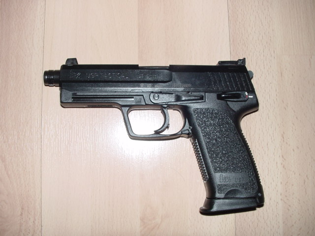 丁丁2004年底购入的新玩具——USP45TAC,他是打算用来打比赛的,但嫌M1911式的手枪弹匣容量太少,最后在GUN SHOW买了这个。
