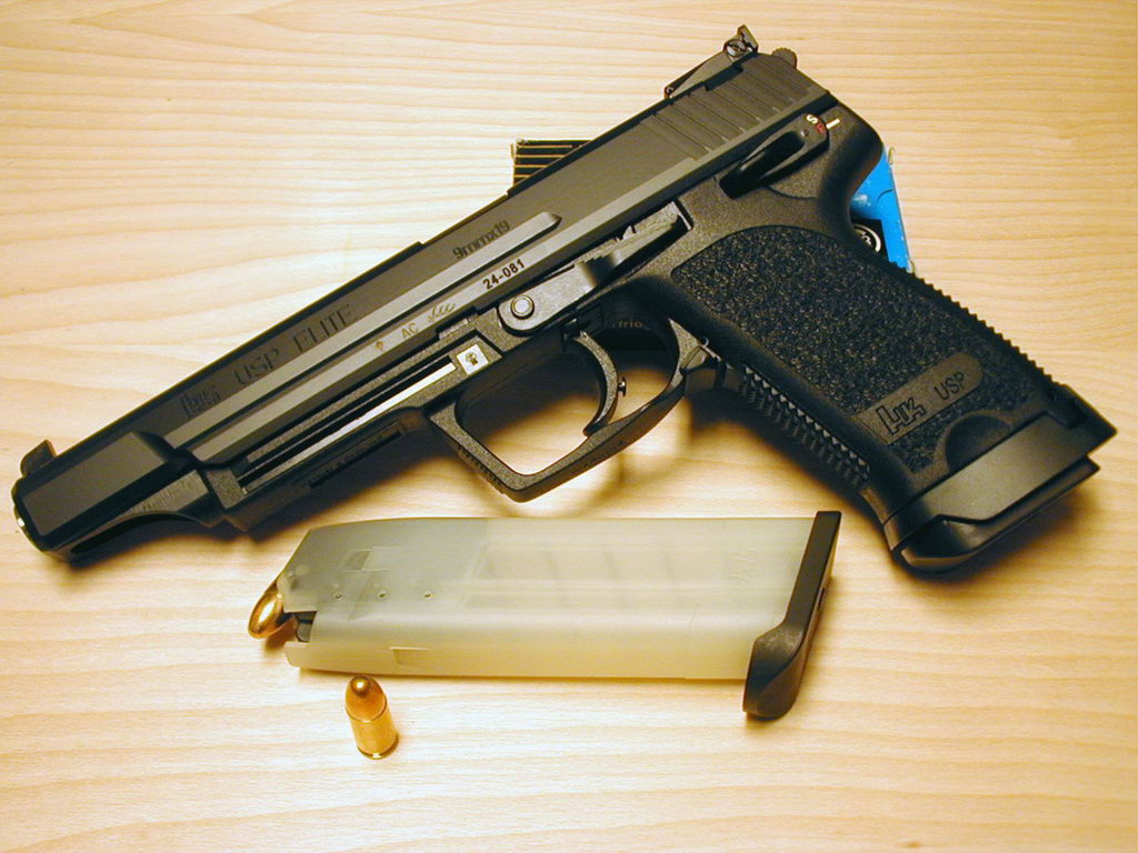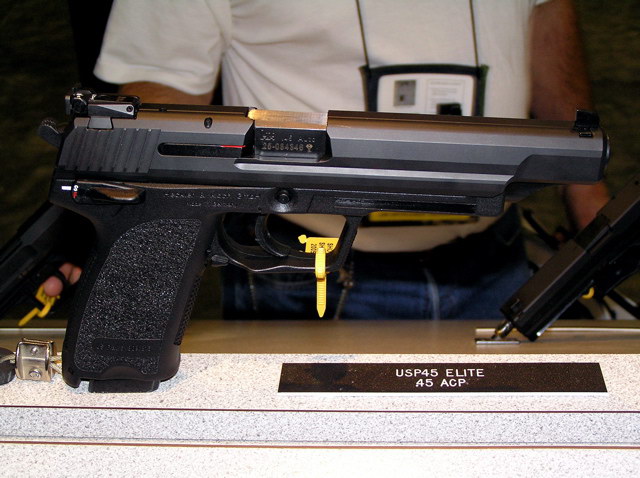 USP Elite专家型(USP 精英)是HK公司在2000年初公开的比赛用手枪,目前只有原型枪,口径有9mm和.45两种,弹匣容量分别为18发和12发。预计USP Elite主要面对欧洲的客户,而非美国。从外形上看,USP Elite比USP Expert稍长,枪口下方的切削为弧形,所以很容易分辨。