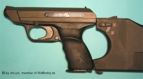 虽然奥地利GLOCK公司宣称他们的GLOCK17是世界上最早采用聚合物造套筒座的手枪,其实早在1968年,HK公司设计的VP70全自动手枪已经大量采用聚合物材料了。VP70的独创性不仅于此,在它之前的全自动手枪都是采用连发和单发两种发射方式,而VP70则采用3发点射和单发两种发射方式。