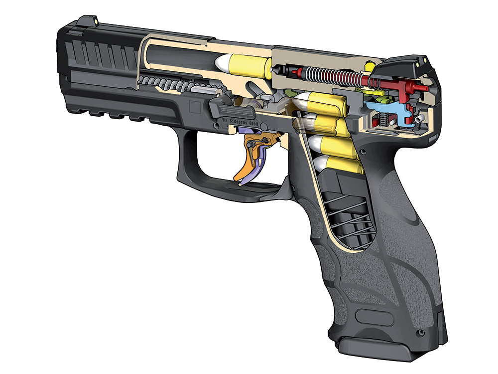 HK VP9手枪在2014年6月推出市场,这是一种紧凑型的手枪,适合隐蔽携带的需要。据说VP9这个名字据说是向VP70手枪致敬的。而HK公司很久没有生产击针平移式手枪了,上一次的这类产品就是VP70,而VP9不但改用平移击针,还使用了扳机保险而取消了手动保险,实际上这手枪多少是有些与GLOCK、S&W M&P这类手枪争市场。