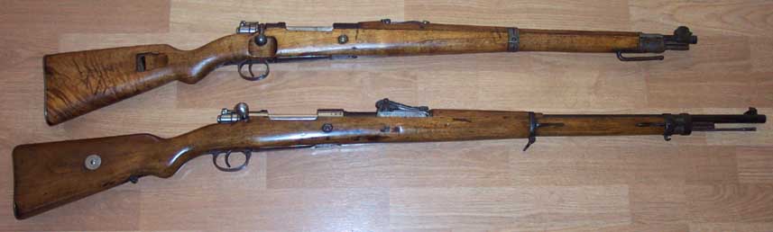 第一次世界大战中使用的Gew.98步枪和Kar.98AZ卡宾枪的外观比较