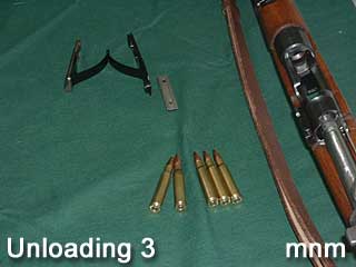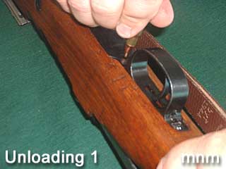 如果要清空弹仓,只要打开枪机取出枪弹就可以了,但此时保险一定要处于中央位置。另外也可以通过拆卸弹仓底板来清空弹仓,但不推荐这种方法。拆卸弹仓底板后,也可以维护弹仓内部或更换损坏的托弹簧和托弹板。一战后改进的毛瑟步枪为托弹板增加了有空仓挂机能力,当弹仓打空后,托弹板会卡住枪机,使枪机无法关闭,提示射手装填枪弹。