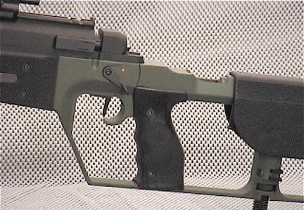 ![]() SR-93的机匣,其右侧抛壳口比较大,扳机可前后移动13mm |