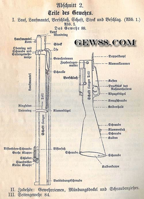 88/·步枪(Gewehr 88/• ):在1891年1月9日后定型,主要是加强枪管,改进弹膛前方的锥膛形状。