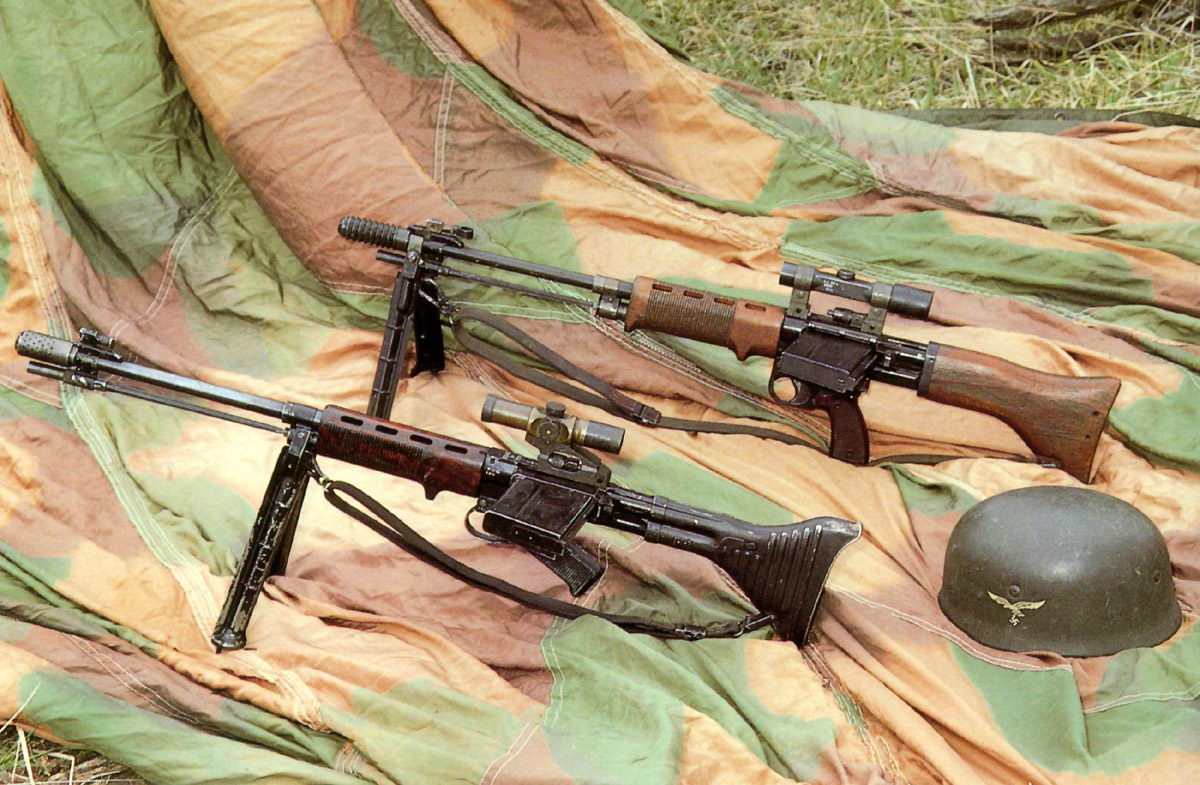 伞兵是纳粹德国的精锐部队,隶属于空军,在二战开始时德国伞兵的轻武器与陆军的差不多。1941年5月入侵希腊克里特岛的战役是德军伞兵的恶梦,在开阔地带的激战中,德军伞兵的武器无法与英国、澳大利亚和新西兰部队的SMLE步枪及布仑机枪抗衡,虽然德军最终占领了克里特岛,但伤亡率超过1/4。当时的德军伞兵只装备有少量的MG34,而且它的轻机枪形态也比其他轻武器要重得多,由于伞兵空降难以携带太多太重的装备,而且要经常远离补给地点独自战斗,于是根据克里特岛的经验,帝国航空部提出研制一种能有效地代替旋转后拉式枪机步枪、冲锋枪和机枪的通用伞兵武器。