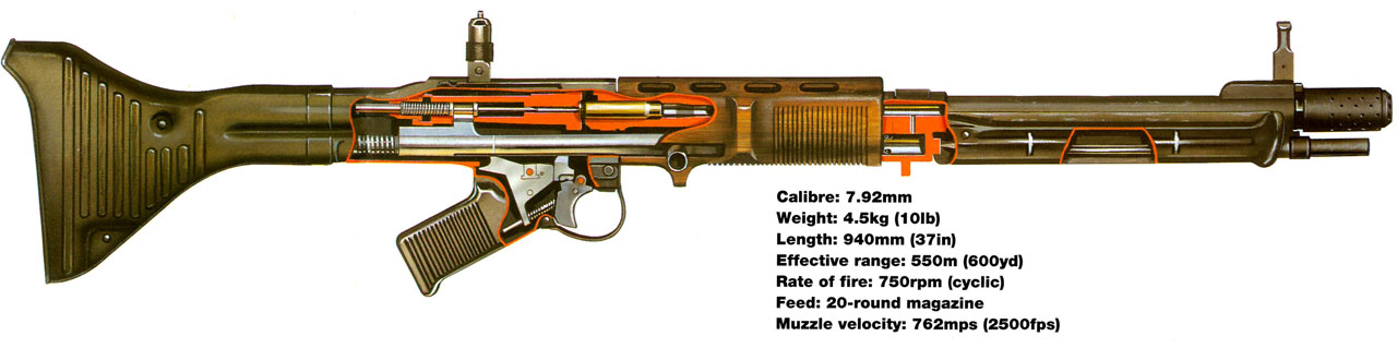 当时德国陆军和武装党卫军正在试验G41半自动步枪,但纳粹德国空军司令赫尔曼·戈林坚持他的伞兵必需使用与陆军不同的装备,他认为这种“伞兵步枪”应当是轻得足以让伞兵带着一起跳伞,能提供精确的半自动火力,又具有全自动压制火力,即同时兼顾制式步枪与轻机枪两种角色,而且首选发射标准的7.92×57mm全威力枪弹。值得注意的是,在当时德国陆军装备部已经认定给全威力步枪加上全自动功能是不可行性的,因此德国陆军非常重视中间型威力的7.92×33mm短弹和Mkb.42自动卡宾枪的研究工作,并最终发展成Stg.44突击步枪。但戈林坚持他的伞兵必须使用全威力武器,于是帝国航空部制订了这种称为“伞兵步枪”的新武器的技术指标,并向武器制造商发出招标。