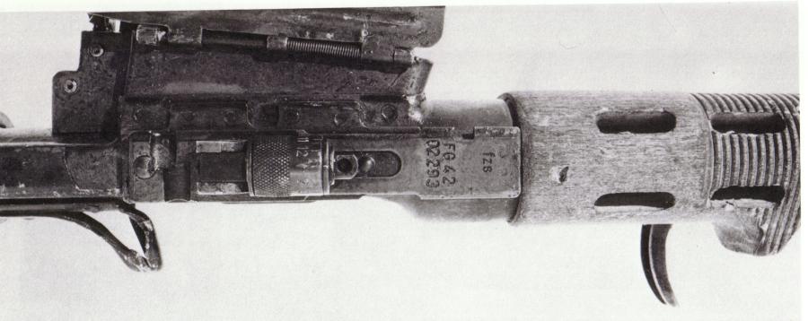 FG42-2比FG42-1稍重,长度也略有增大,不过在全自动射击时仍然是显得太轻,甚至要依靠两脚架来帮助控制后坐力,而且生产成本仍然是太高,尤其是与同时代的Stg.44突击步枪相比较。而且在FG42-2的设计完成之前,战争境况已经变得很差。盟军持久的轰炸已经严重削弱了纳粹德国的军工生产能力,使得武器生产不得不用较次的材料和工艺。为了尽快提高产量,德国又增加了5个其他规模较小的生产商来生产FG42,但直至战争结束时,6个生产商一共只生产了约5000支FG42-2步枪,而且只有很少的数量被交到军队手上。在奥托·斯科尔兹内(Otto Skorzeny)领导下营救贝尼托·墨索里尼的突击队就使用了FG42。