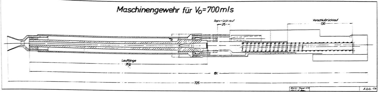 为活动安装设计的航空机枪,发射7×39mm枪弹,枪口初速700m/s,莱茵金属的提案,本公司绘图。