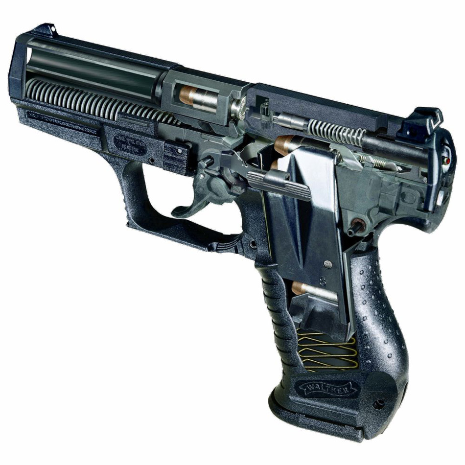 P99采用枪管短后坐原理,其设计是仿照数十年前SIG Sauer P220手枪上的改进的勃朗宁式闭锁机构,通过底把内一块闭锁卡铁与枪管尾部下方的一个斜槽作用使枪管上下摆动而实现开锁和闭锁。瓦尔特公司最早是在P88手枪上使用这种结构,现在又移植到P99手枪上。由于聘请了奥地利格洛克公司的设计师,因此P99在设计特点多少有点GLOCK手枪的影子。