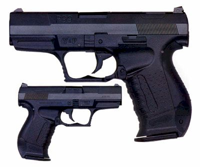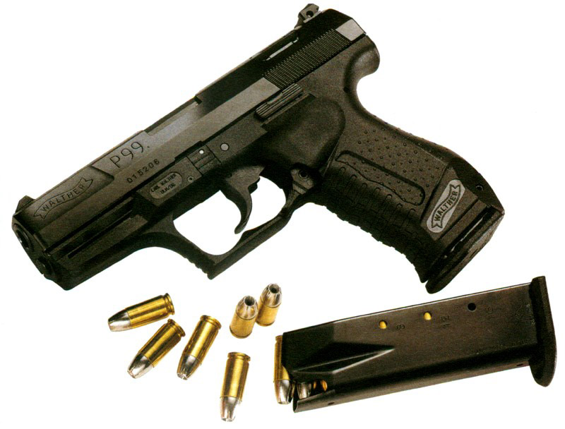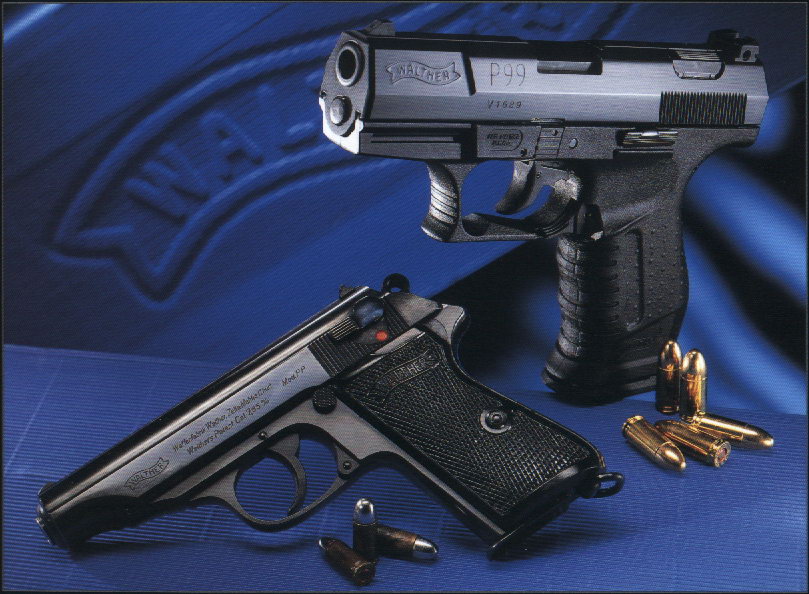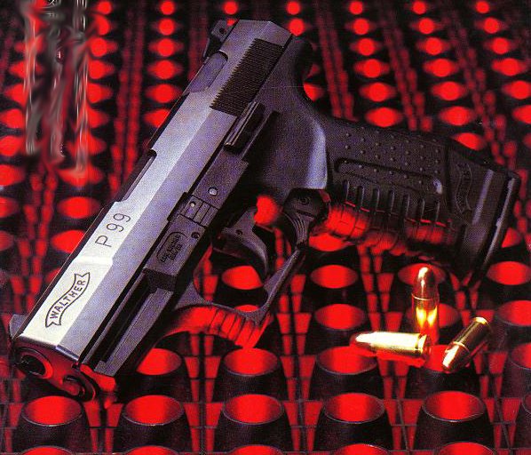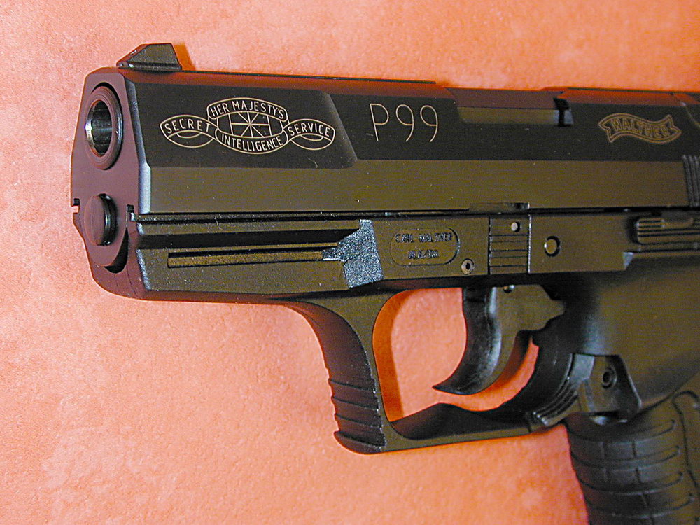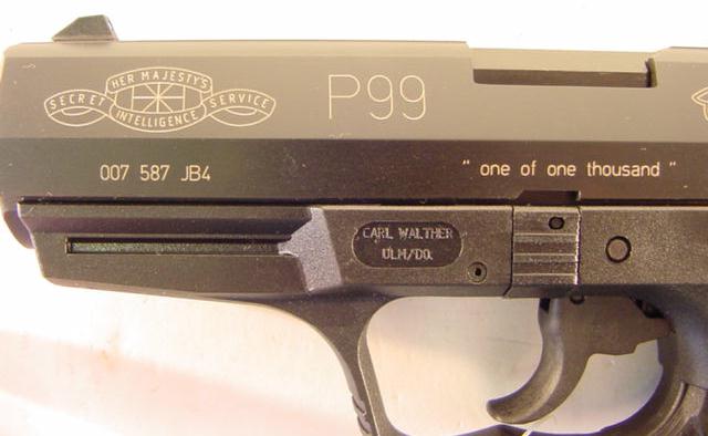 在过去30多年中,著名的间谍电影《007》系列中主角詹姆斯·邦德的随身武器一直是瓦尔特PPK袖珍手枪,这把手枪一直传到了第5代邦德——皮尔斯·布鲁斯南手上,但是布鲁斯南接拍的第二部007电影——即第18集007《明日帝國》中,他手上的武器换成一把让人眼前一亮的漂亮新手枪——瓦尔特P99,“刚柔并济”的第5代詹姆斯·邦德手上拿着这把线条优美的手枪更显绅士风度。不过遗憾的是,除了替代PPK成为新一代的007佩枪外,P99的总体评价不佳,市场销量也不好。