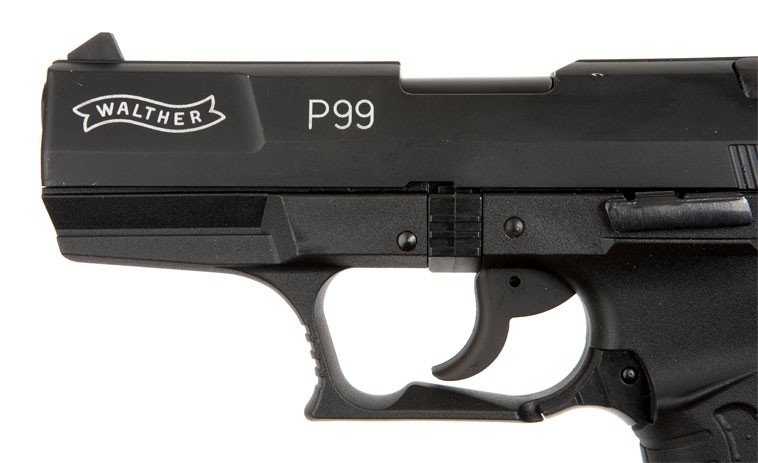 与GLOCK手枪相似,P99手枪也没有外露的手动保险,但内有4个自动保险装置:击针保险、扳机保险、非待击保险和跌落保险。击针保险会卡住击针使其不能击发底火,只有扳机扣到一定距离后才会向上顶起,让路给击针通过;板机保险和GLOCK的扳机保险一样,都是避免击发连杆意外活动,但GLOCK的扳机保险是内藏式的小扳机,而在P99上则是铰接式的扳机,即扳机本身就是保险柄,扣下到一定距离才开始拉动击发连杆;而非待击保险则是在解脱待击时阻挡击针,不让其打击到膛内枪弹的底火;至于跌落保险则是防止武器意外跌落时产生走火。此外待击解脱功能也能起到辅助的保险作用,例如执法人员在枪战过后可以解脱击针的待击状态,即使膛内仍然有弹也能安全可靠地携行。万一遇上突发危机,双动击发功能也让执法人员可以随时开枪。