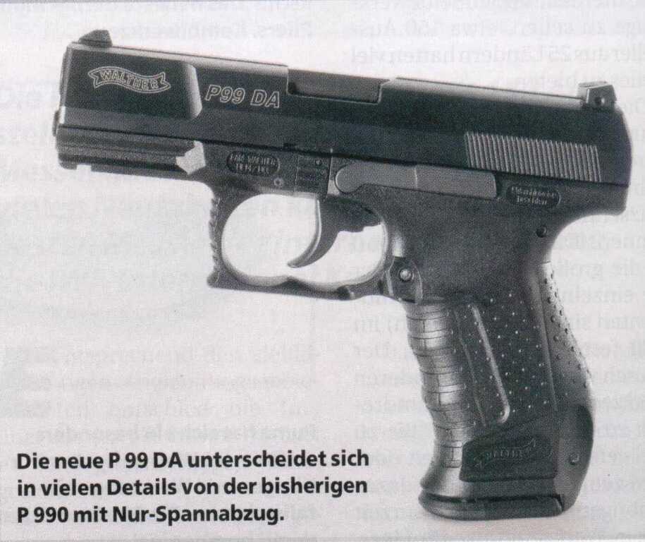 当P99推出后不久,立即就在最新一集007电影中成为詹姆斯·邦德的新宠,借助电影的宣传效应,确实为P99增加了不少卖点。而有使用过的射手也认为P99很可靠很准确,尤其是9mm型精度很高,双排弹匣也提高了战斗中的火力持续性,而且握把很舒适。然而大多数同时射击过HK USP、GLOCK、SIG Sauer和瓦尔特P99的射手都认为P99的扳机是这些枪之中设计最差的一种,其板机扣动的感觉就像双动转轮手枪一样——既长且重,使它难以稳定地射击。由于扳机行程过长,一些手掌不大的射手即使在换了最薄的握把背板也不容易操作扳机。例如QBQ论坛上的黄药师的老婆爱死了P99,但买枪时试来试去始终有点手指够不到的感觉,只好作罢。而其他缺点还有如在射击中枪口上跳得比较历害,待击解脱时也比较费力等等,另外据说还有少部分用户反映在弹匣全满时很容易装不到位,所以套筒有时会无法实现空仓挂机。P99的大容弹量、射击准确、可靠和握持舒适等优点与市场上其他成名手枪如SIG Sauer、HK USP等相比并没差别,而P99的售价又贵,加上上述的缺点,性价比并不高,所以导致其市场销量不佳,而SW99的销量则比瓦尔特P99更差。