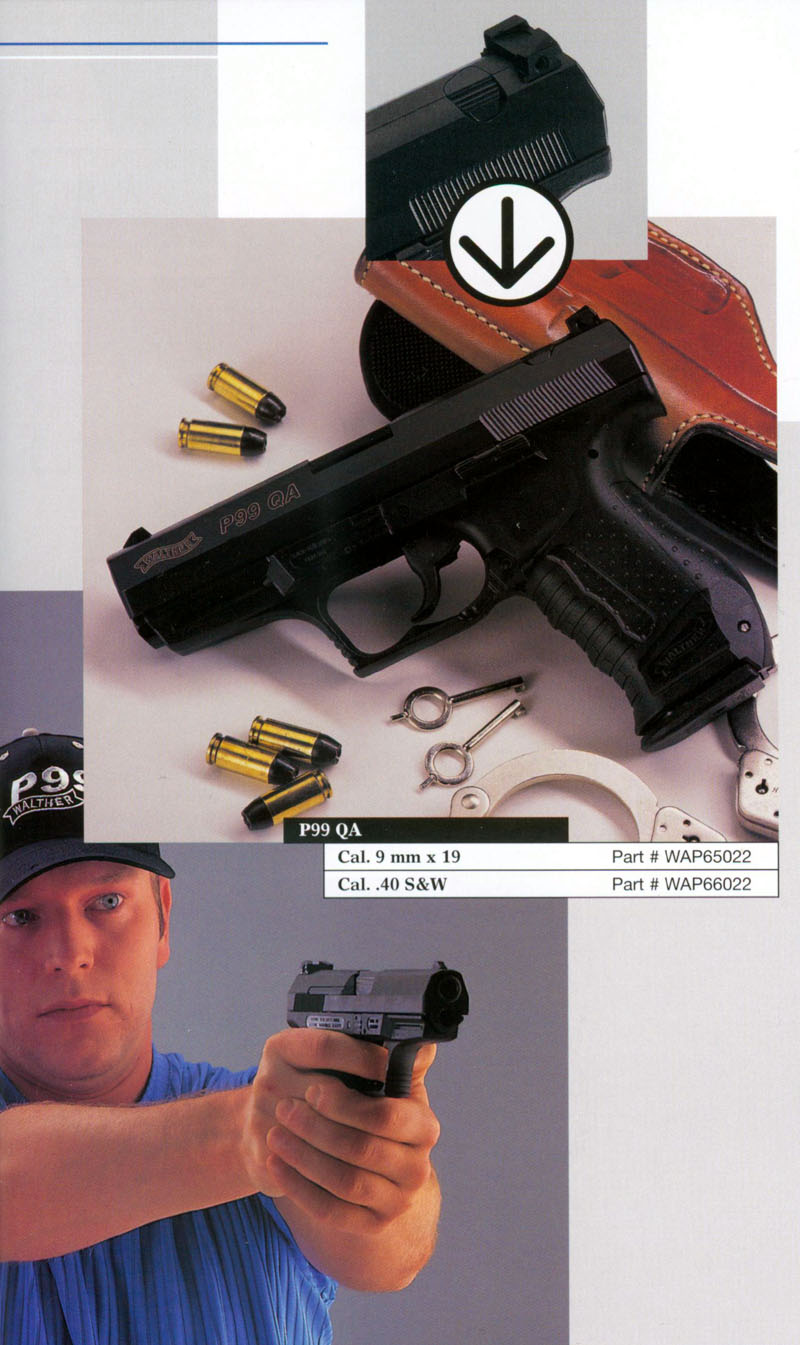 P99QA——QA型,在2000年推出,采用行程较短、扣力较轻的半双动扳机,并有手动待击击针。