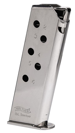 同样是.380 ACP口径,左边是PP弹匣可装7发(底部的尾指托并不增加弹容量),右边是PPK弹匣可装6发