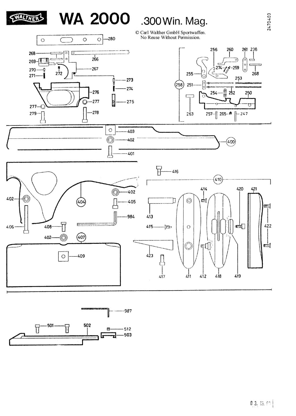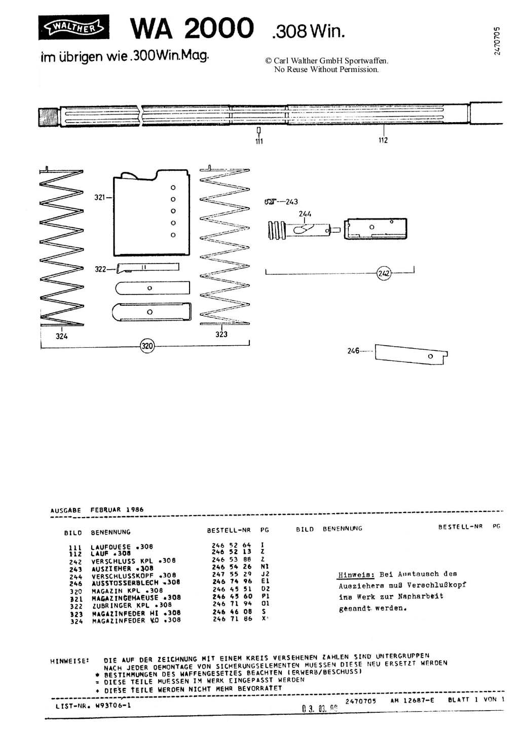 WA2000设计时的弹膛是以.300温彻斯特-马格南口径为基础,有效射程远远超出了800米,其他的可选口径有7.62×51mm北约标准口径和7.5×55mm瑞士口径。