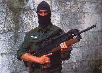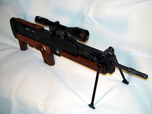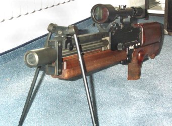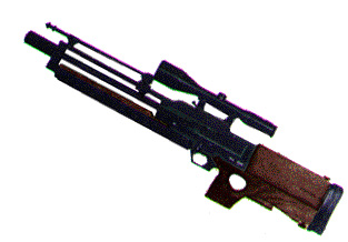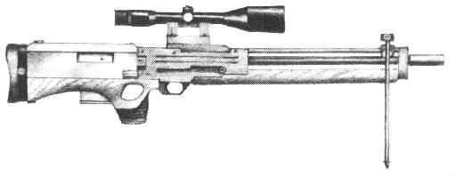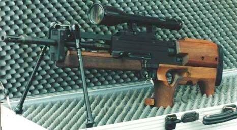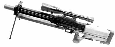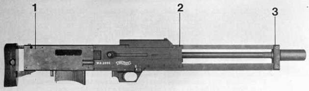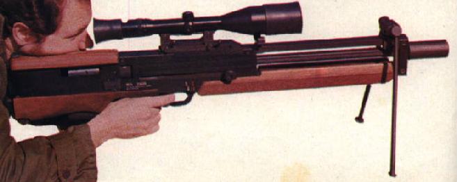 第一代WA2000,图中可看出枪口的圆筒形消焰器和枪管表面的凹槽