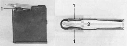 WA2000使用单排可拆卸盒形弹匣供弹,弹匣容量为6发。弹匣插在握把后面。