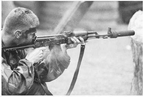 在阿富汗的匈牙利特种兵改装过的AKM63,除了装上皮卡汀尼导轨,有些还在枪口装上了AMD65的制退器