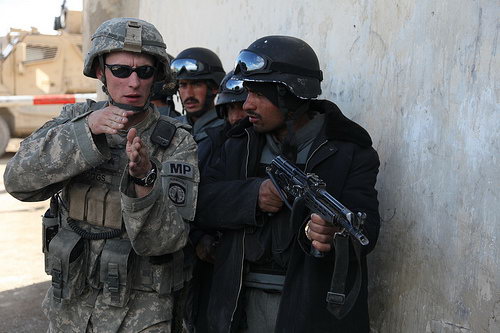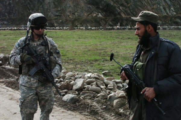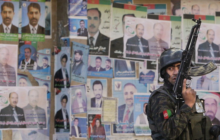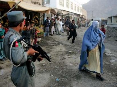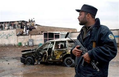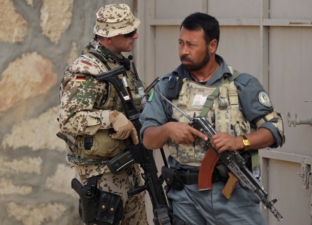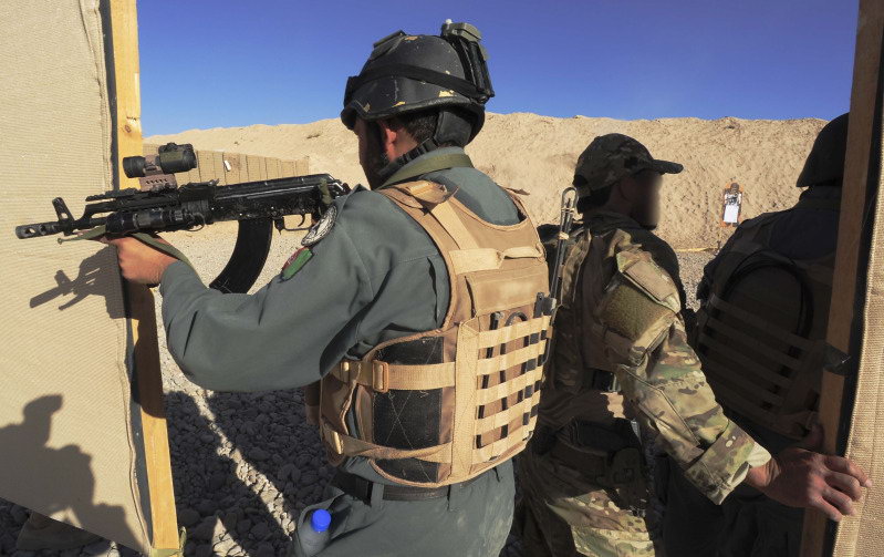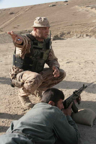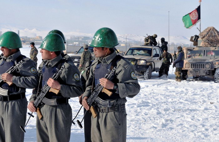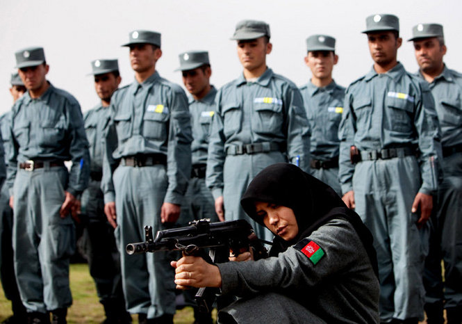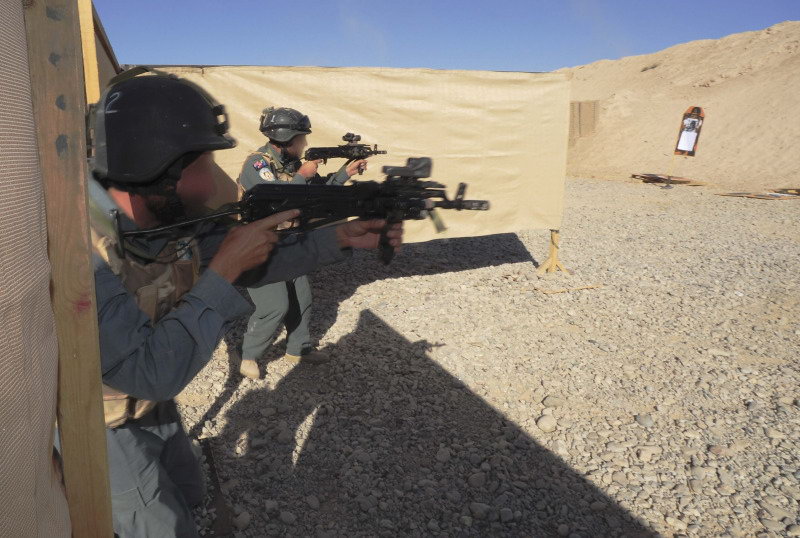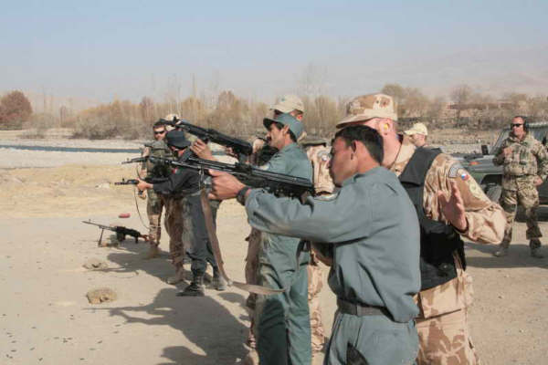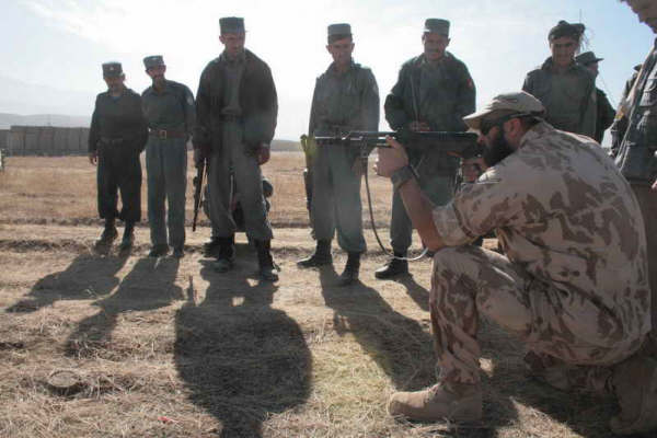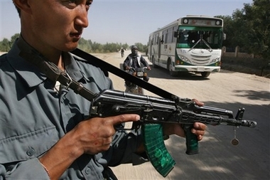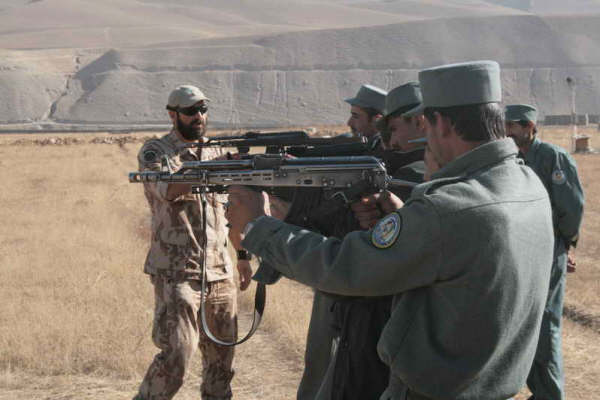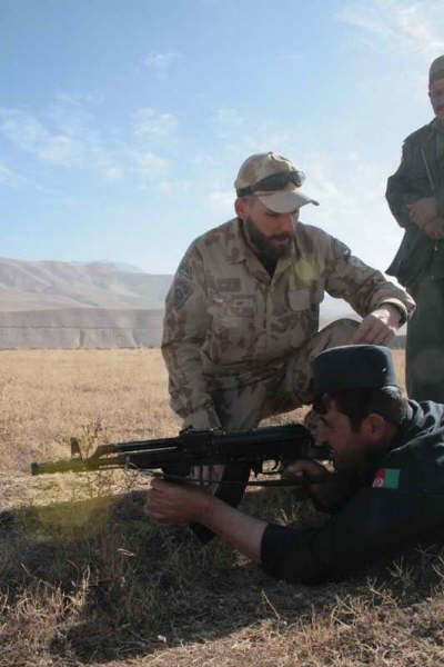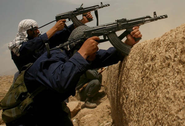 这个阿富汗警察把他的AMD-65的前握把换成AK-63的木制握把