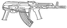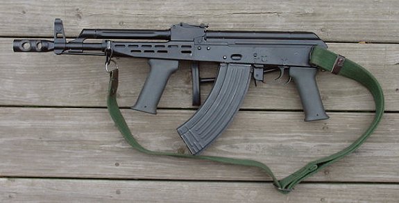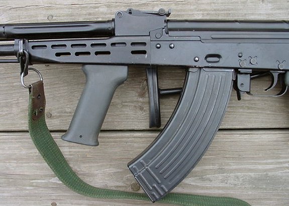这把枪比较有意思,是加沙地带的巴勒斯坦恐怖分子把AMD-65更换了AK护木