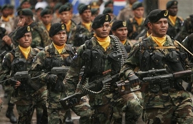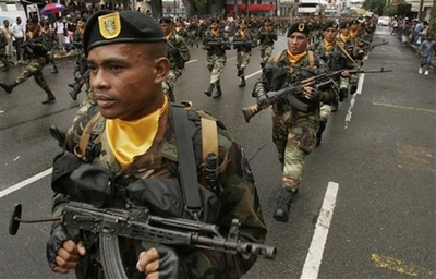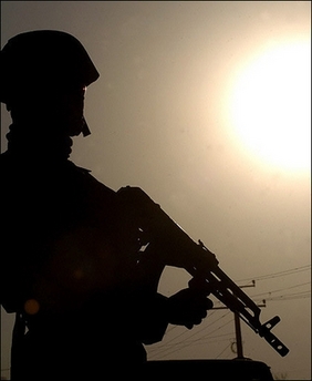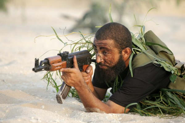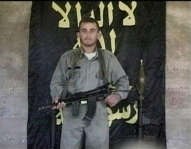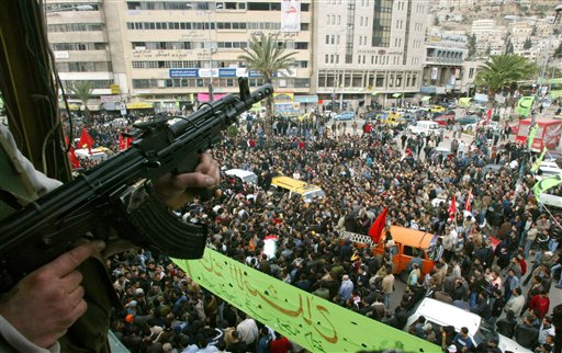 一个在以色列自杀式爆炸的巴勒斯坦“人弹”在录像机前宣誓的画面,他手持AMD-65