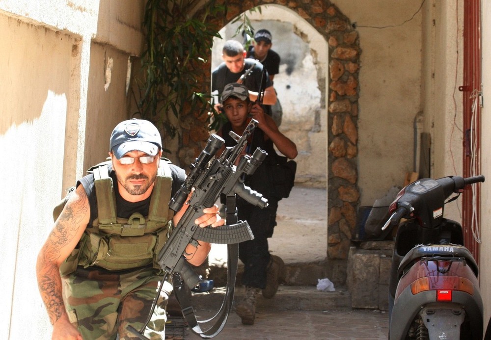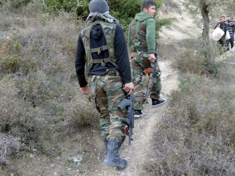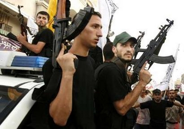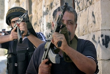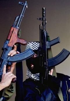 手持AMD-65及罗马尼亚1965型AKMS的巴勒斯坦武装分子