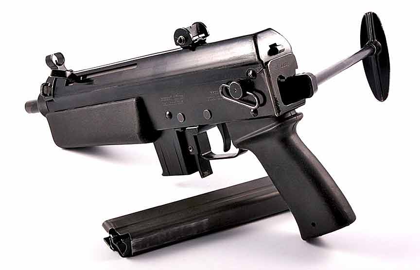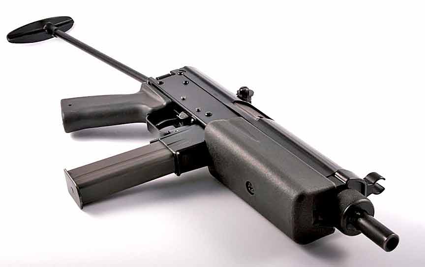 KGP-9冲锋枪采用常规的自由后坐式枪机,开膛待击,枪机内有一根浮动击针,由击锤打击击针进行击发。该枪主要由冲压件制成,个别加强部件为铸件。KGP-9还有一种250mm长枪管的半自动卡宾型。