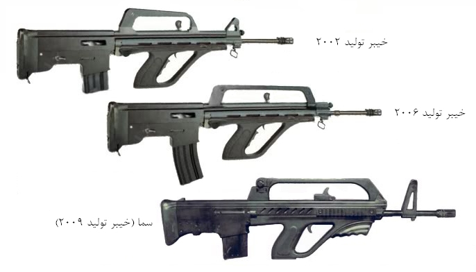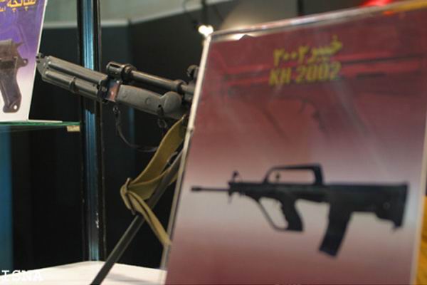 伊朗的KH2002突击步枪,也被称为“海拜尔”突击步枪(Khaybar,是历史上的绿洲名字,读作海拜尔,距麦地那东方约95英里,那里也是阿拉伯地区中最大的犹太人殖民区),是由D.I.O.(伊朗王国的国营防务工业组织,State-Owned Defence Industries Organization)在2003年初期开始研制,于2006年定型并开始量产和装备部队。其外形类似于法国的FA-MAS和中国的QBZ95,甚至曾经被误传为95的新改型。实际上KH2002步枪是D.I.O.公司的S-5.56突击步枪的塑料外壳无托型,而S-5.56步枪其实就是伊朗仿制中国仿制M16A1的CQ突击步枪的的仿制品。目前伊朗正在打算同时采用DIO S-5.56和KH2002这两种步枪,取代现装备的G3步枪,这些G3都是伊朗本国生产的,在大革命时期就开始服役了。
