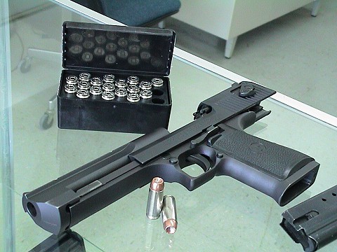 | 双手射击.50AE沙漠之鹰,结果由于没能控制住后坐,两支枪都先后抛壳失败 | ![]() |
