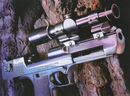 1990年,美国人埃文·威尔登研制了.50AE(Action Express)手枪弹,1991年,马格南公司开发了.50AE口径的沙漠之鹰,并在1992年特许IMI生产。.50AE沙漠之鹰使自动手枪的口径达到顶峰。 不过由于.50AE的底缘和.44马格南相同,实际上并没有重新设计这把枪,马格南公司还推出改装套件,只需更换.44沙漠之鹰的枪管就可以变成.50沙漠之鹰了。