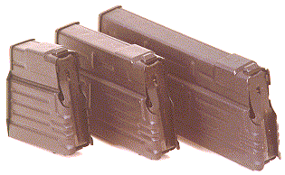 从左到右分别为5发、15发和25发三种容量的弹匣