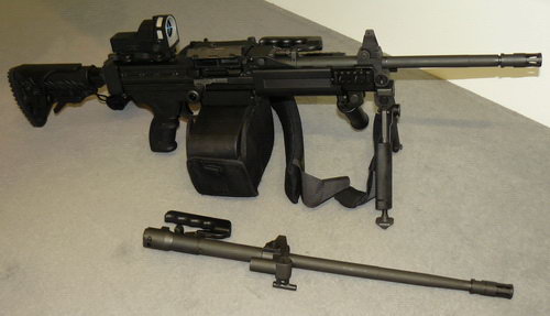 最初推出的Negev NG7的枪管和5.56口径差不多粗,虽然重量轻但容易过热,现在的枪管已经得到加粗