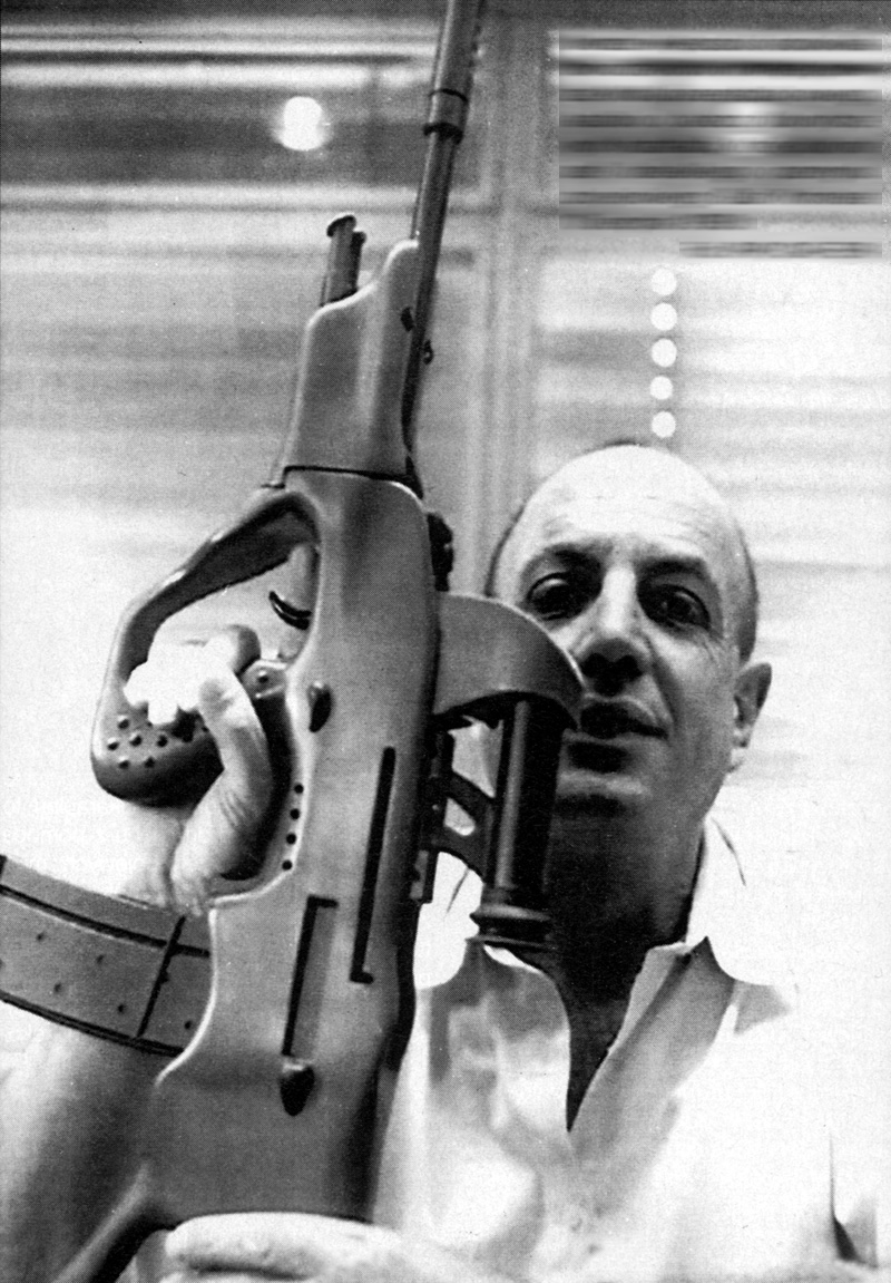 1993年8月10日,主设计师Gabi Komiser在展示Tavor步枪的原型。