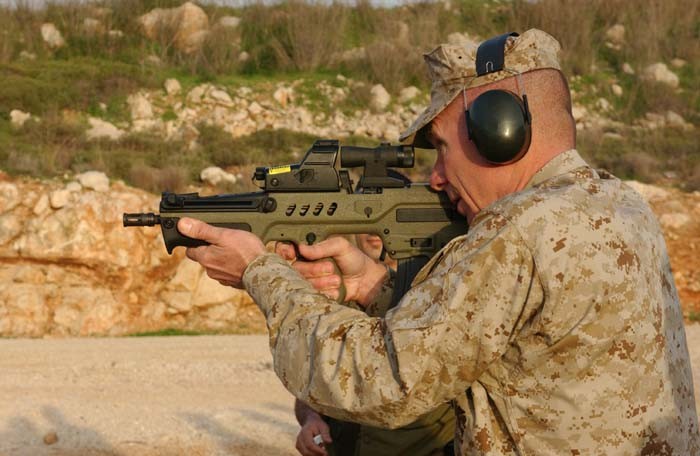 由于以军不采用Tavor,因此IMI曾提供一些Tavor步枪供美军进行试验,希望能在XM8项目上也分一杯羹,现在当然是失败了。图为美国海军陆战队员在试射CTAR型。
