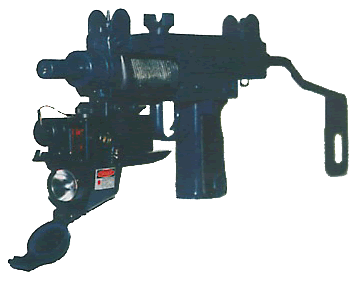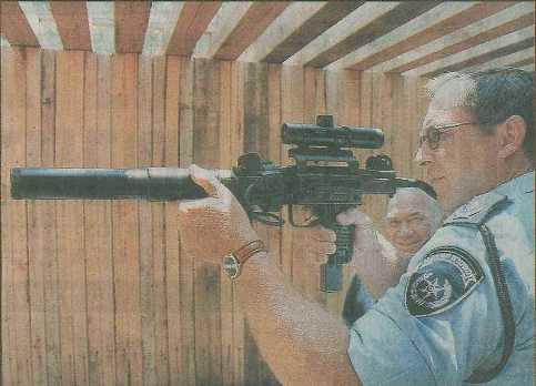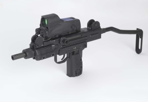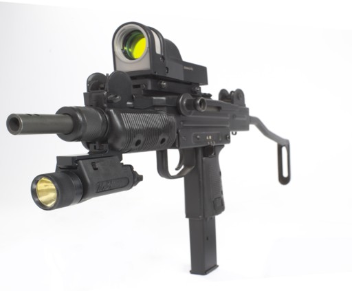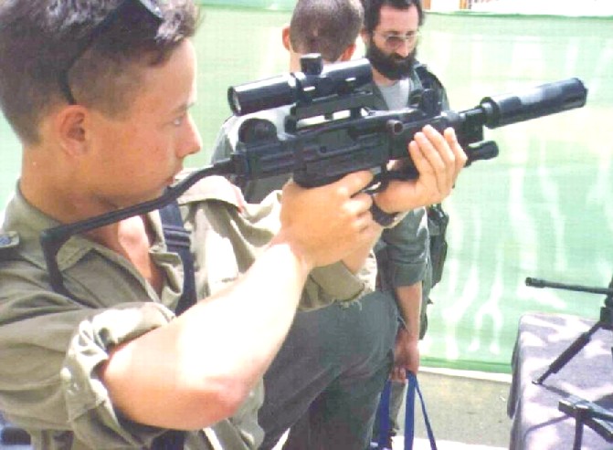 安装有消声器和4倍瞄准镜的Mini Uzi,这个是以色列边防守卫队的YAMAM
