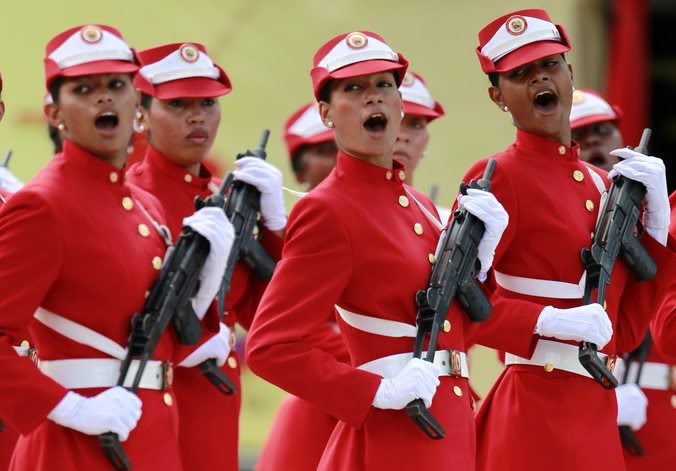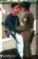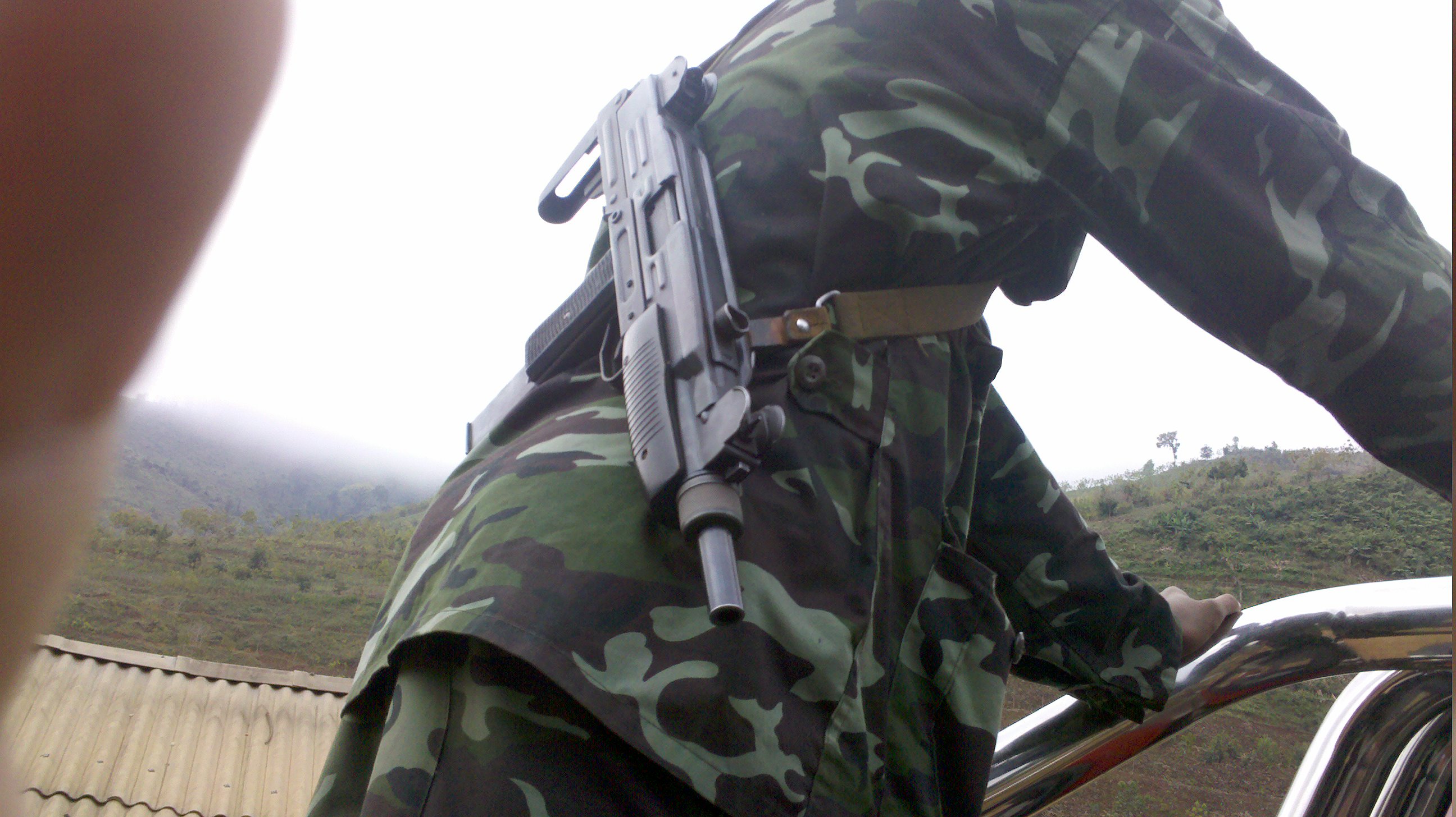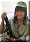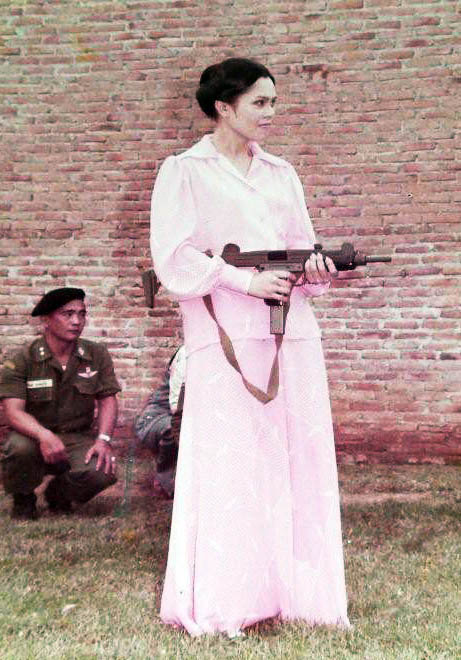 1970年代泰国王后诗丽吉·吉滴耶功随拉玛九世一起视察泰国边防警察的空中支援部PARU时在玩Uzi冲锋枪