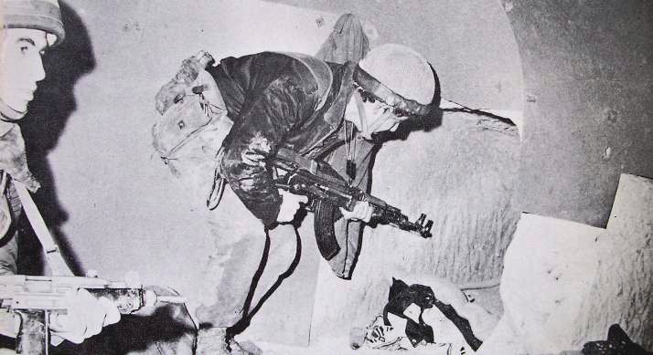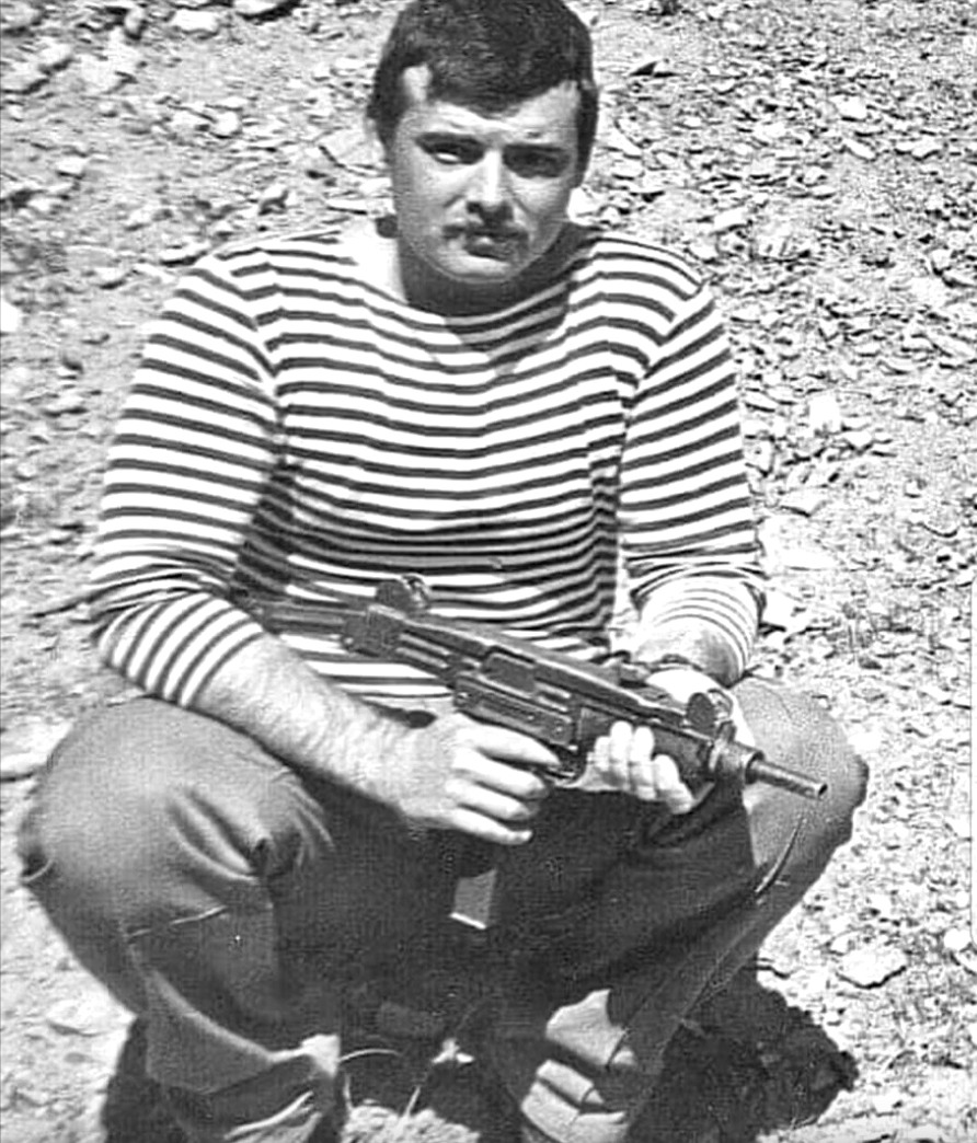 以色列总理本雅明·内塔尼亚胡还在总参侦察营服役时的照片,手上拿着Uzi冲锋枪